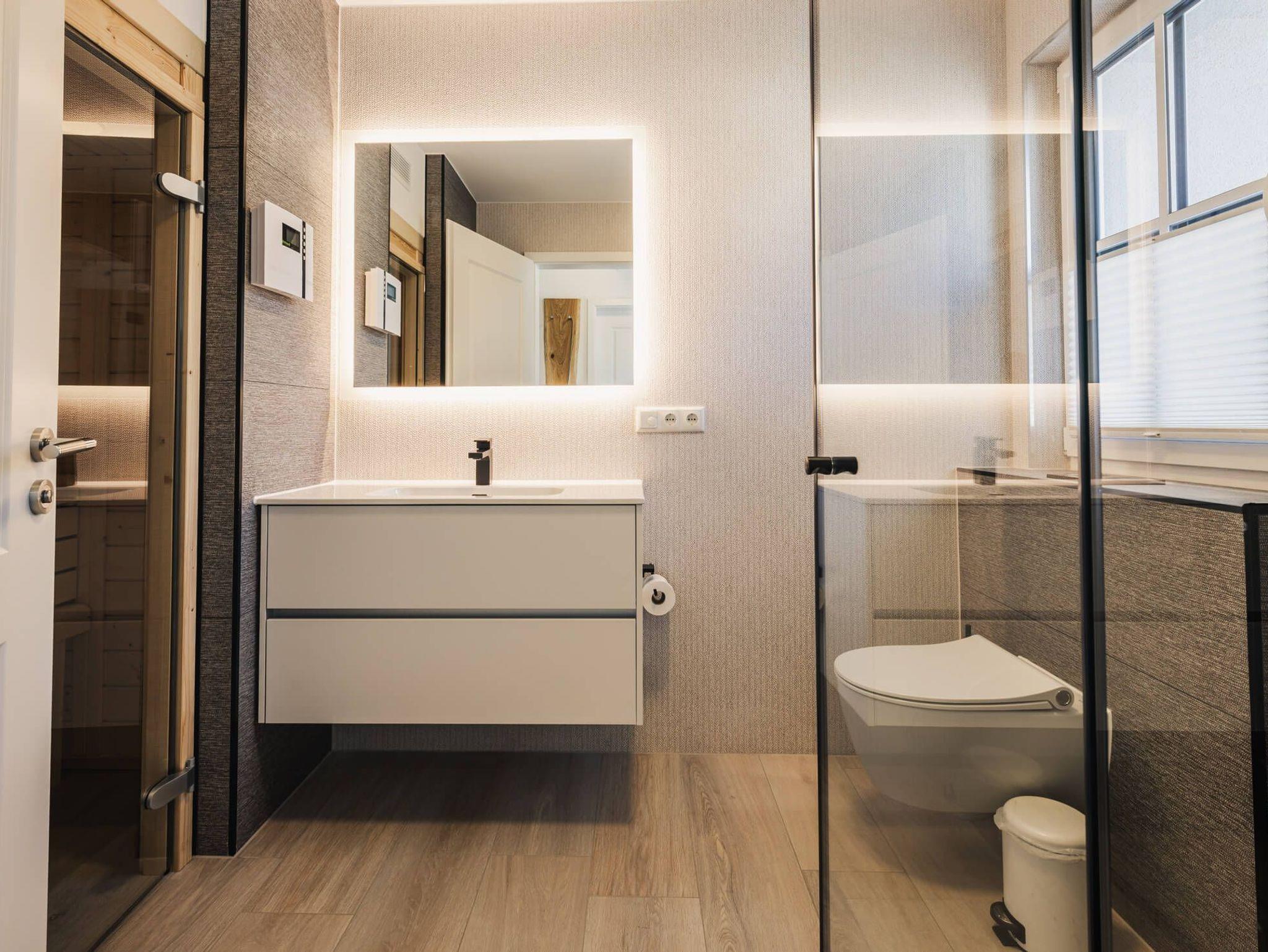 Modernes Ferienhaus Kranichkieker auf Zingst mit Sauna, Terrasse und direktem Boddenzugang für erholsamen Familienurlaub.