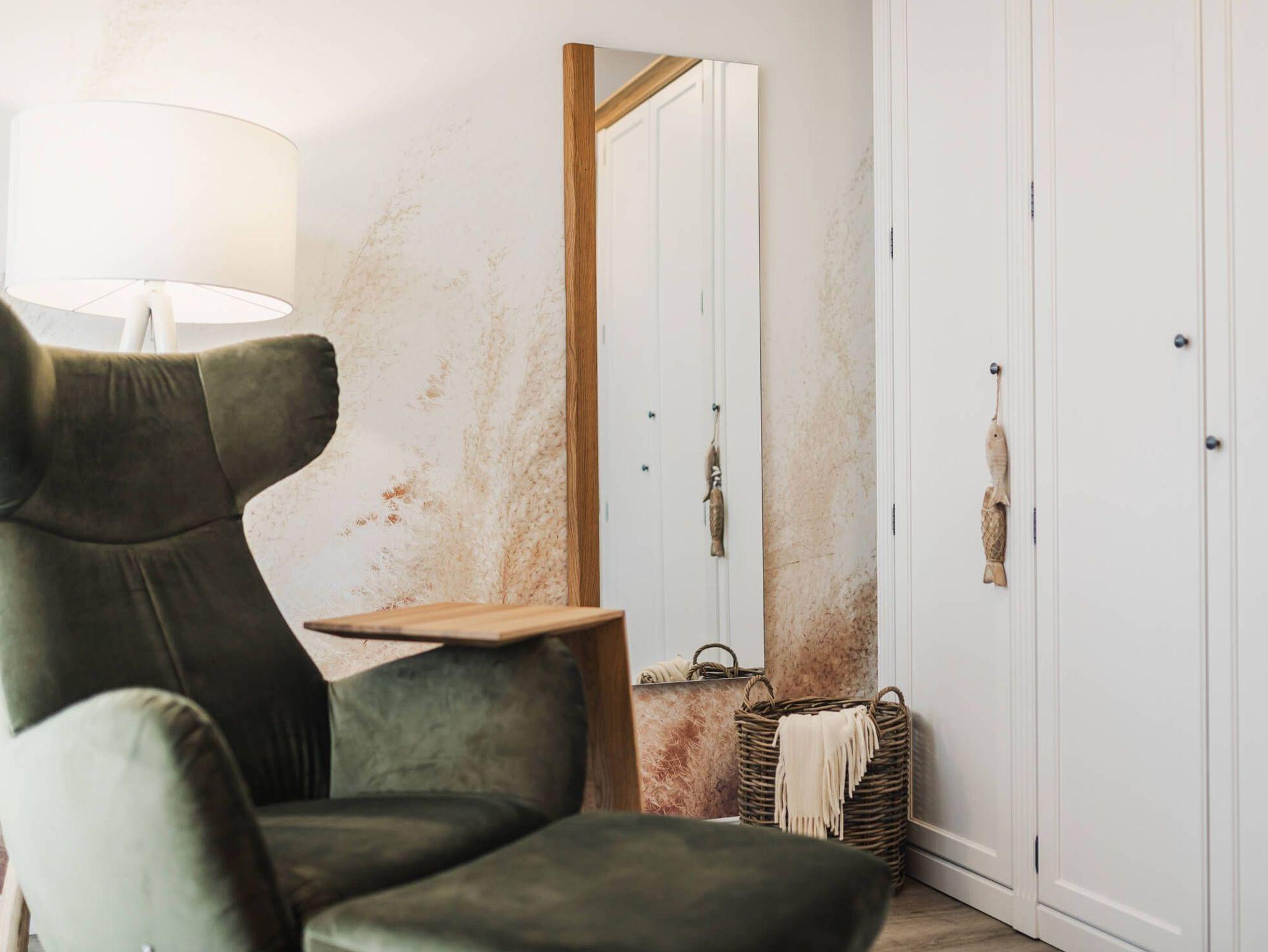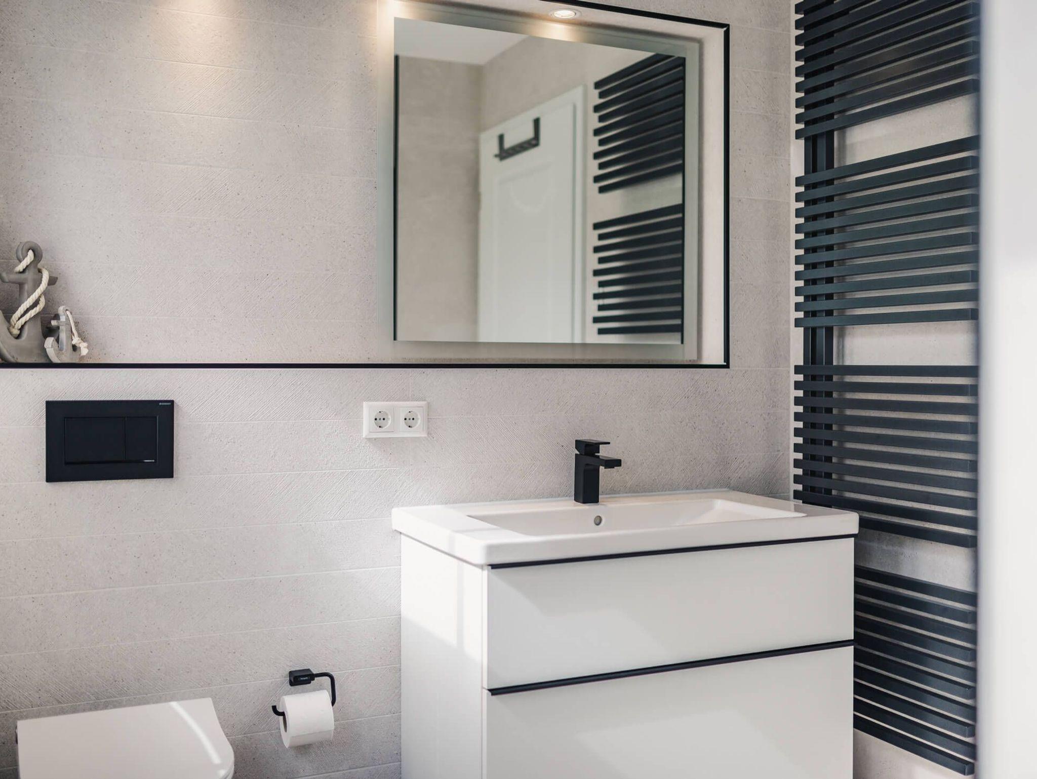 Auf 105 Quadratmetern Wohnfläche bietet Ihnen das Ferienhaus Kranichkieker Platz für 7 Personen. Es verfügt über 4 Schlafzimmer und 2 Bäder. Ein Bad im Erdgeschoss mit ebenerdiger Dusche und Sauna und ein Bad im Obergeschoss mit Badewanne und bodengleicher Dusche sorgen für Komfort und Entspannung. Die Schlafzimmer im Obergeschoss sind komfortabel mit Boxspringbetten und Flatscreen-TV ausgestattet. Das Schlafzimmer im Dachgeschoss beinhaltet zwei Einzelbetten und einen Flatscreen-TV. Der offene Wohn-Ess-Bereich mit voll ausgestatteter Küche bietet ausreichend Platz für gemeinsame Mahlzeiten und gesellige Abende. Die Terrasse mit angrenzendem Rasen lädt zum Sonnenbaden, Grillen und Entspannen im Freien ein. In dem abschließbaren Fahrradschuppen können Sie Ihre Fahrräder sicher abstellen. Zwei PKW-Stellplätze stehen Ihnen direkt am Haus zur Verfügung.