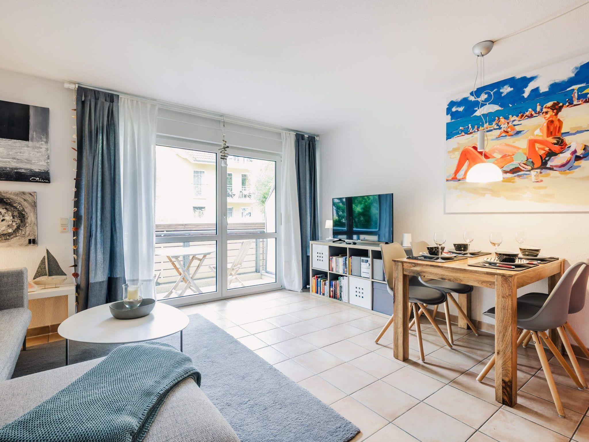 Moderne Ferienwohnung in Zingst mit Balkon, Strandnähe und Sauna für entspannte Urlaubstage.