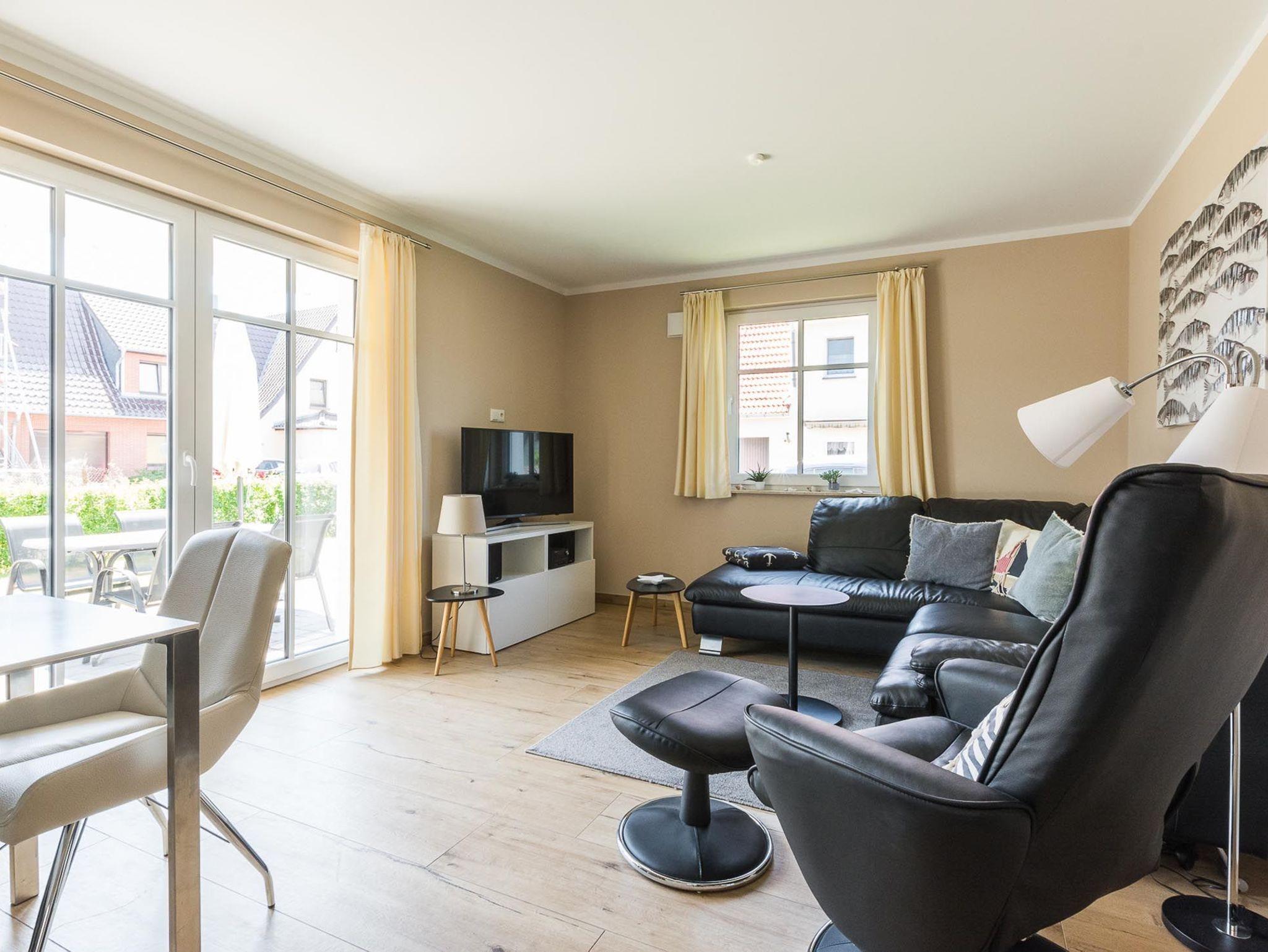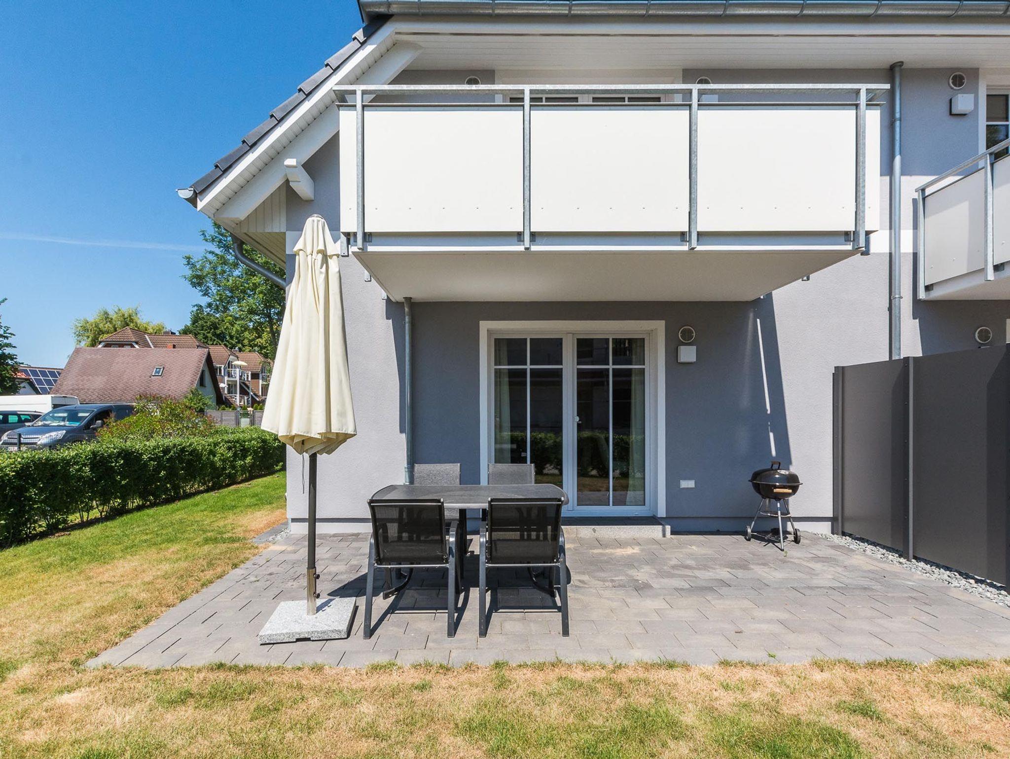 Modernes Ferienappartement in Zingst mit großer Terrasse nahe dem Strand für entspannte Urlaubstage.