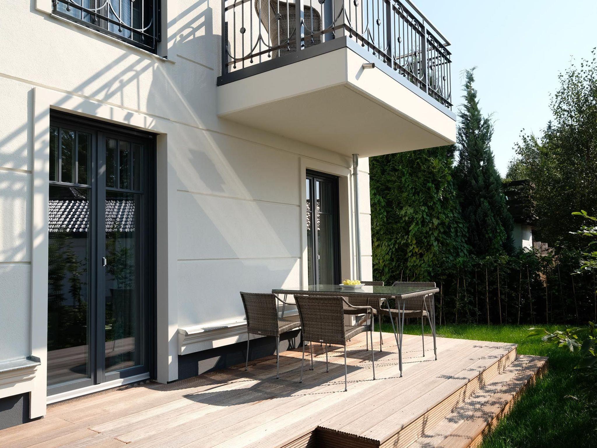 Im Außenbereich lädt Sie eine große Terrasse zum Verweilen ein. Für Sicherheit sorgen unsere Fahrradpedalparker unmittelbar vorm Hauseingang, ebenfalls ist eine Faltgarage für Ihre Fahrräder vorhanden. Zwei PKW-Stellplätze stehen Ihnen zur freien Verfügung.