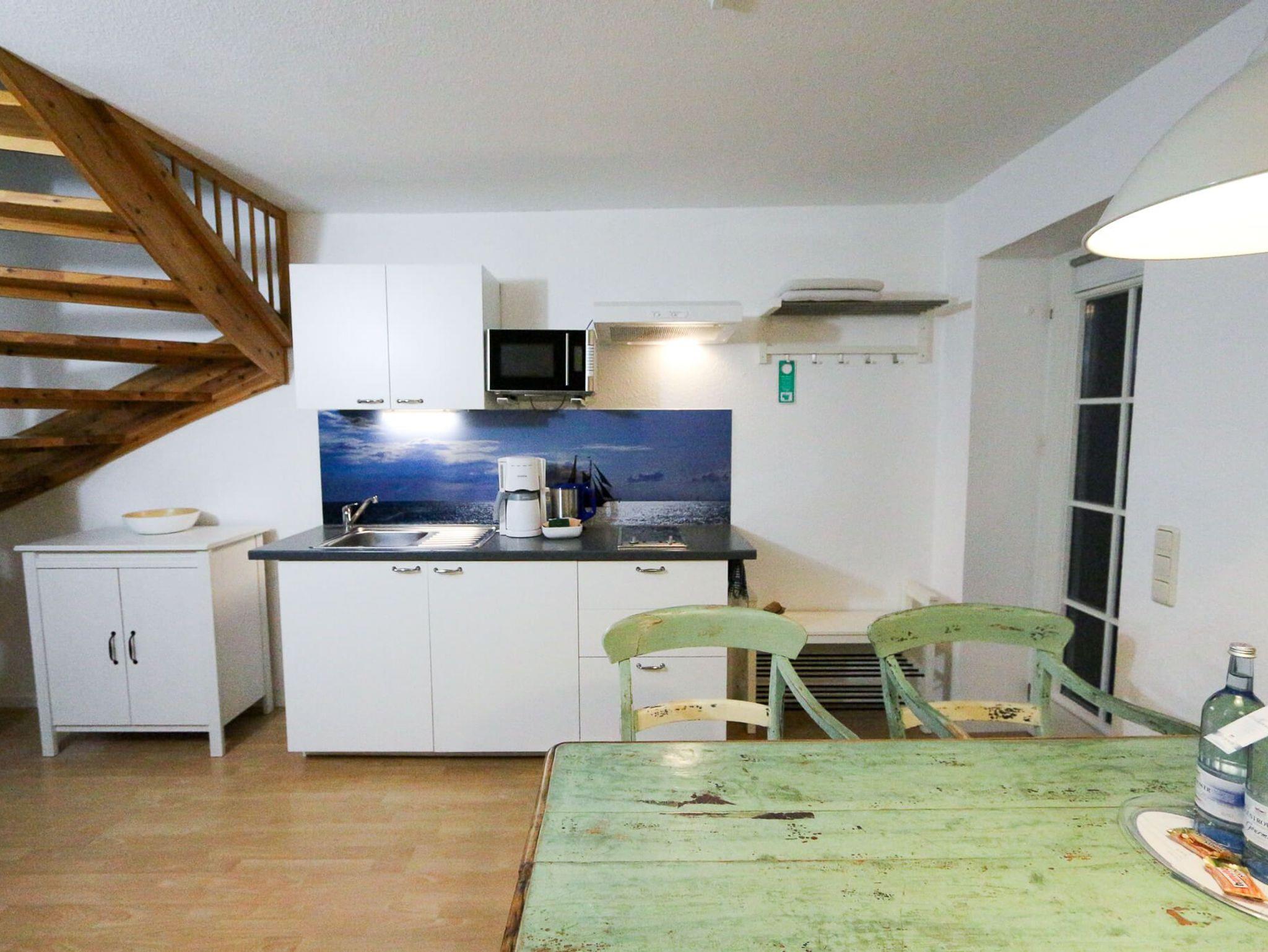 Das Steuerbord-Loft (3E) bietet als großzügiges Maisonette-Apartment auf ca. 45 m² über zwei Etagen (OG & DG) Platz für bis zu 5 Personen. Als explizit haustierfreie Wohneinheit garantiert es einen allergikerfreundlichen Aufenthalt. Die Nord-Ausrichtung sorgt auch an heißen Sommertagen für ein angenehm kühles Raumklima. Die Ausstattung umfasst einen hellen Wohn-Essbereich mit Smart-TV, kostenfreies WLAN sowie eine Küchenzeile mit Ceranfeld und Mikrowelle inklusive Grillfunktion. Das moderne Badezimmer ist mit Dusche und kostenfreien Pflegeprodukten ausgestattet. Bettwäsche und Handtücher sind im Preis bereits enthalten.