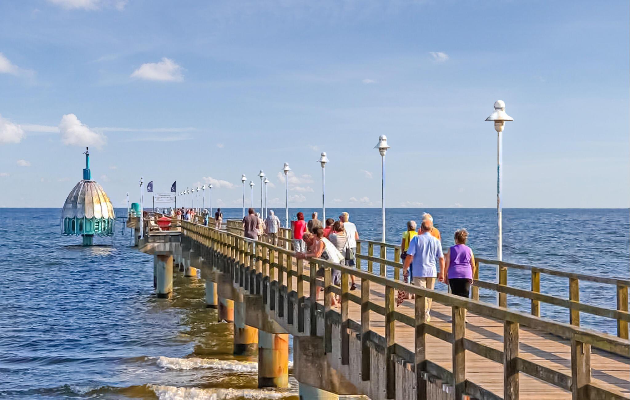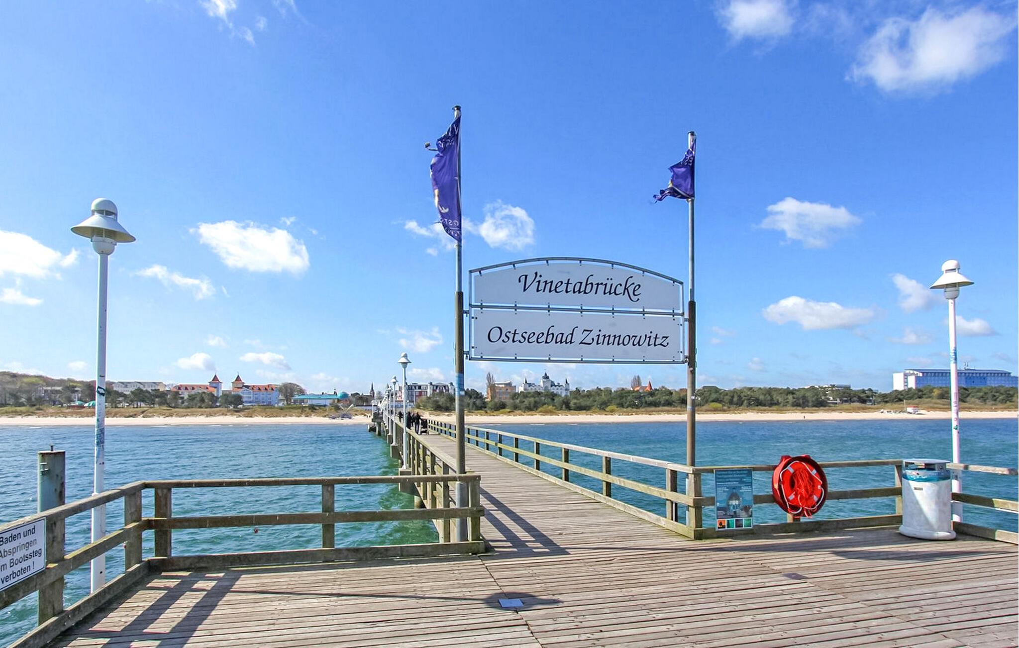 Das Ostseebad Zinnowitz mit seinem breiten Sandstrand und seiner mit sehenswerten Villen gespickten Promenade ist einer der schönsten Badeorte auf der Insel Usedom. Zahlreiche Restaurants, Einkaufsmöglichkeiten, eine Surf- und Segelschule, ein gut ausgebautes Radwegenetz sowie Tennisplätze und Therme ermöglichen einen abwechslungsreichen Urlaub. Im Sommer finden regelmäßig Kur- / Kulturprogramme statt. Highlight sind die Vineta-Festspiele, die den gesamten Sommer auf der Freilichtbühne aufgeführt werden. Der Ort verfügt weiterhin über eine 300 m lange Seebrücke mit einer Tauchgondel. Von hier aus können Schiffsfahrten in andere Seebäder bis nach Polen unternommen werden.