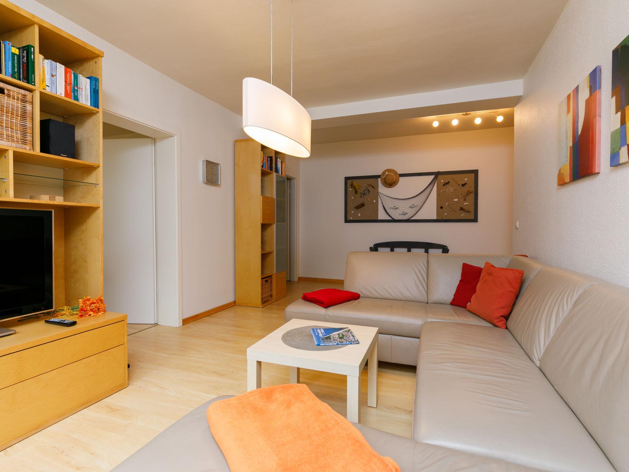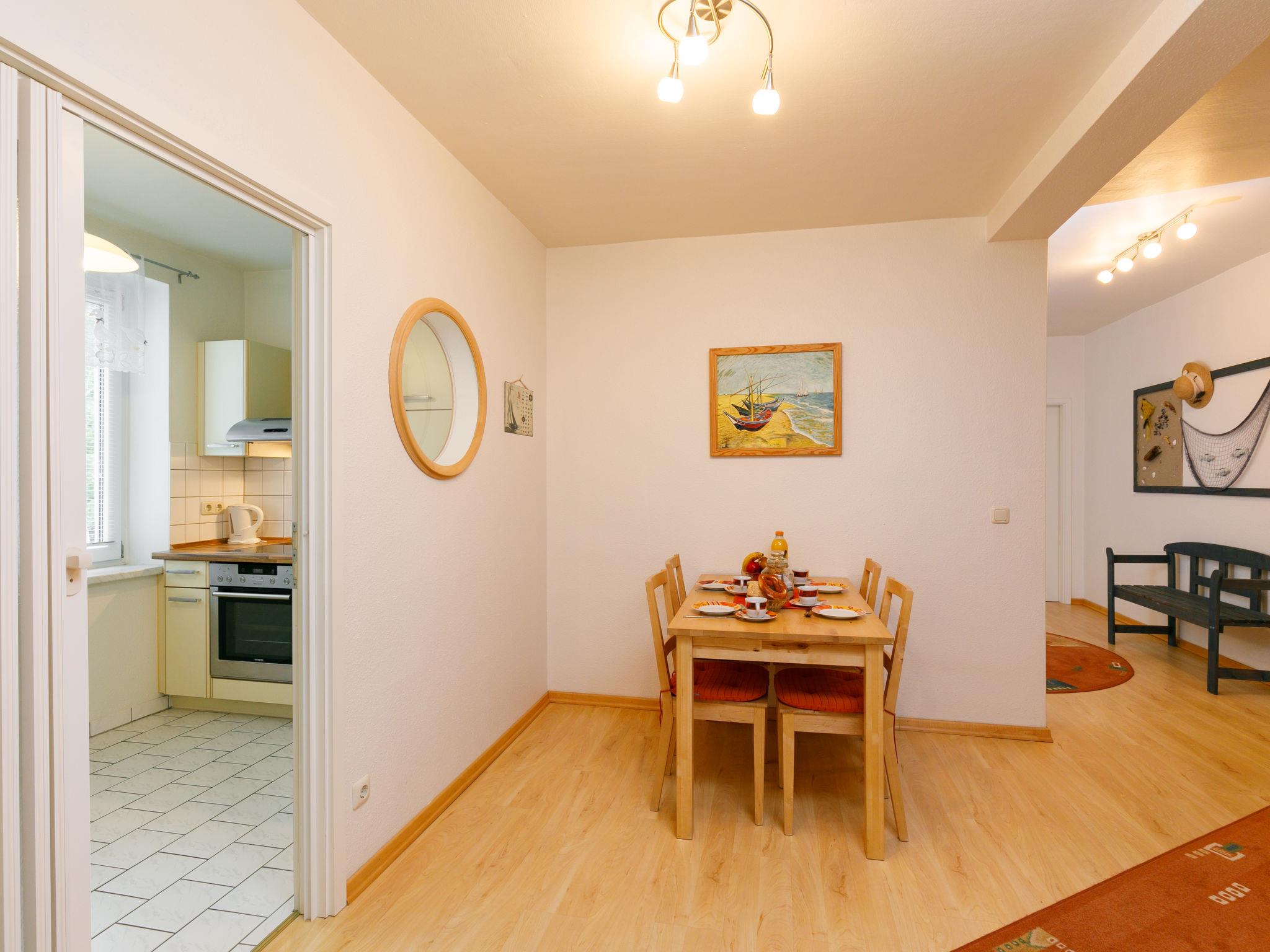 "Strandgut", 2-Zimmer-Wohnung 63 m2 im 2. Stock. Schön eingerichtet: Wohn-/Esszimmer mit Kabel-TV (Flachbildschirm), Radio. 1 Zimmer mit 1 Doppelbett. Kochnische (Backofen, Geschirrspüler, 4 Glaskeramikplatten, Toaster, Wasserkocher, Mikrowelle, elektrische Kaffeemaschine). Dusche/WC. Parkplatz (1 Auto) beim Haus. Bitte beachten: Nichtraucher-Unterkunft. Rauchmelder.