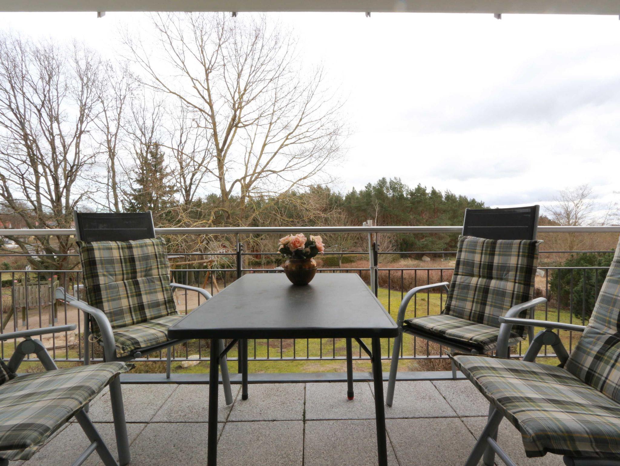 • Der Balkon ist in Richtung Süd-Ost ausgerichtet und ist mit 4 Stühlen und einem Tisch ausgestattet.