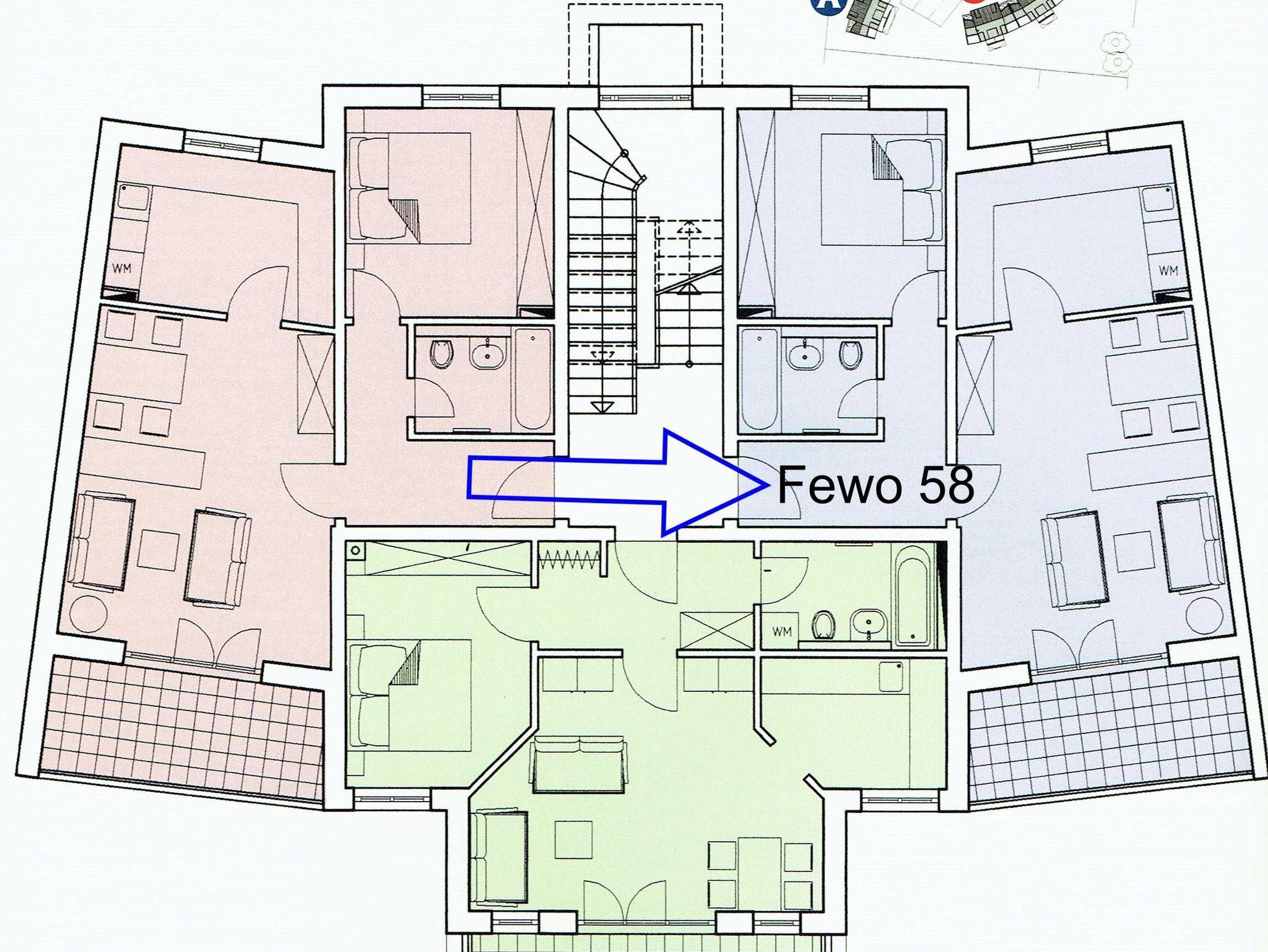 Die Ferienwohnung Nr. 58 ist wie folgt ausgestattet: