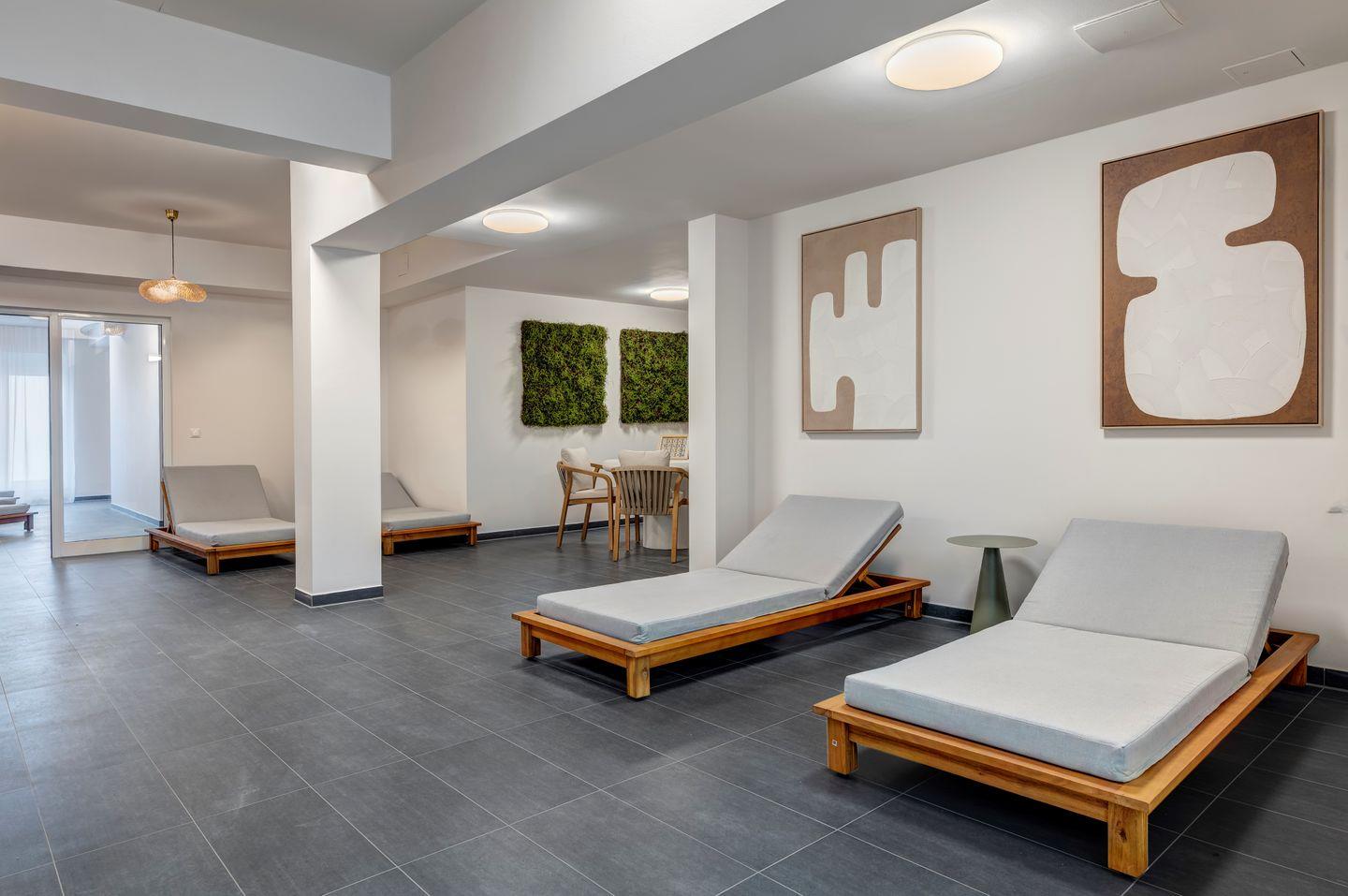 Modernes Apartment A13 im Pine Hill Resort mit Gartenblick und Balkon, ideal für erholsame Tage inmitten der Natur.