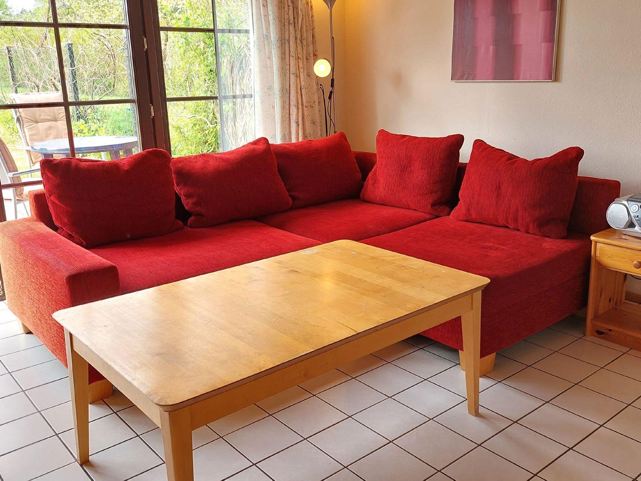 Ihr ca. 50 qm großes freistehendes reetgedecktes Bauernhaus 8RB1 (Nichtraucher) mit typisch niedrigen Raumhöhen ist im Maisonettenstil über 2 Etagen erbaut und mit einer offenen Treppe verbunden. Vor dem Wohnbereich im Erdgeschoss befindet sich eine schöne Südterrasse mit grünem Ausblick auf den eigenen Gartenteil. Im gemütlichen Wohnbereich mit einer Sitzgruppe und einem großem Flatscreen-TV finden Sie neben der angrenzenden Wohnküche auch einen Essbereich. Im Küchenbereich erwartet Sie ein einen Backofen, Kühlschrank, eine Kaffeemaschine, Wasserkocher sowie weitere nützliche Küchenhelfer. Ebenfalls im Erdgeschoss befindet sich das Badezimmer mit Dusche, Waschtisch und WC. Im Obergeschoss finden Sie den Schlafbereich mit Doppelbett und Kleiderschrank. Auch ein Kinderreisebett würde dort Platz finden. Durch den umzäunten eigenen Garten und die grüne Umgebung ist diese Wohnung perfekt für Kinder und Haustiere geeignet.