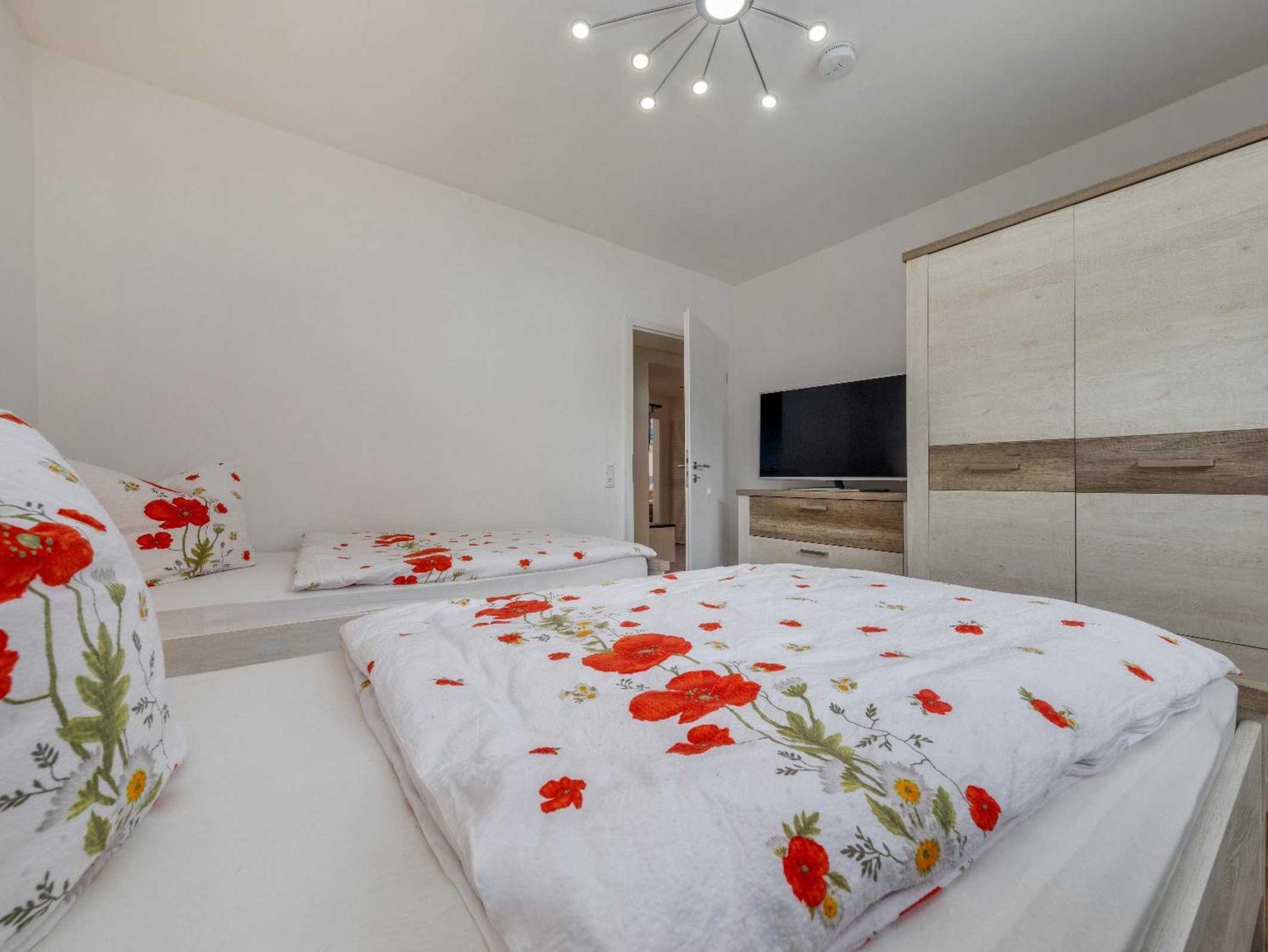Die Ferienwohnung Mohnblume liegt ebenerdig und ist auch für Rollstuhlfahrer geeignet. Die Wohnfläche beträgt 65 qm und kann 4 Personen ganzjährig beherbergen. Die 2019 neu renovierte Wohnung gliedert sich in 2 Schlafzimmer, Wohnzimmer, Küche und Bad mit ebenerdiger Dusche. Das Elternschlafzimmer ist mit einem Boxspringbett ausgestattet, das Kinderzimmer hat zwei Einzelbetten und einen zusätzlichen Fernseher.