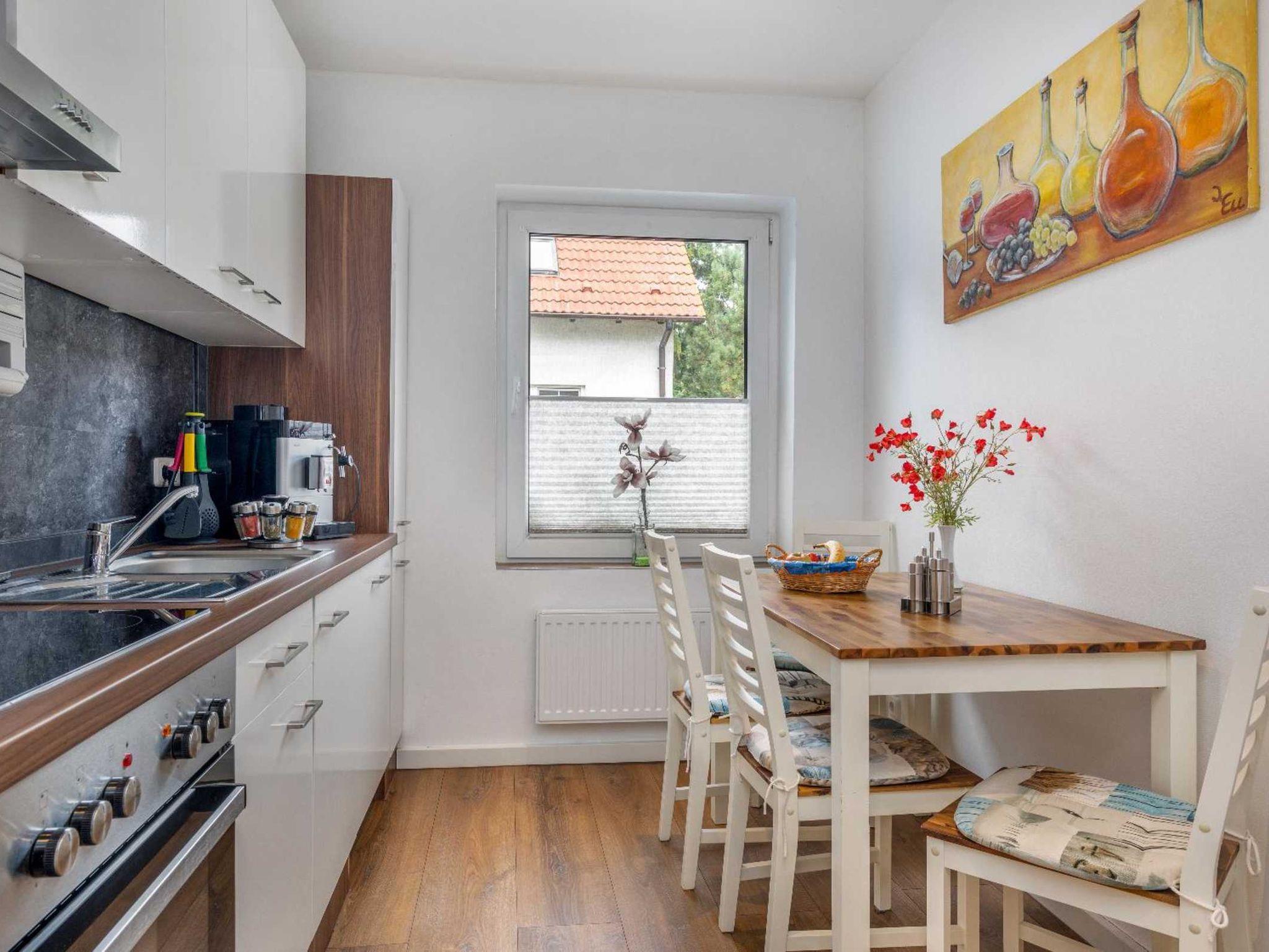Die separate Küche ist mit Geschirrspüler, Backofen, Ceran-Kochfeld, Kühlschrank mit Gefriermöglichkeit, Mikrowelle und Kaffeemaschine sowie Toaster und Wasserkocher ausgestattet. Waschmaschine, Trockner, Wäscheständer und Wäschespinne stehen ebenfalls zur Verfügung.