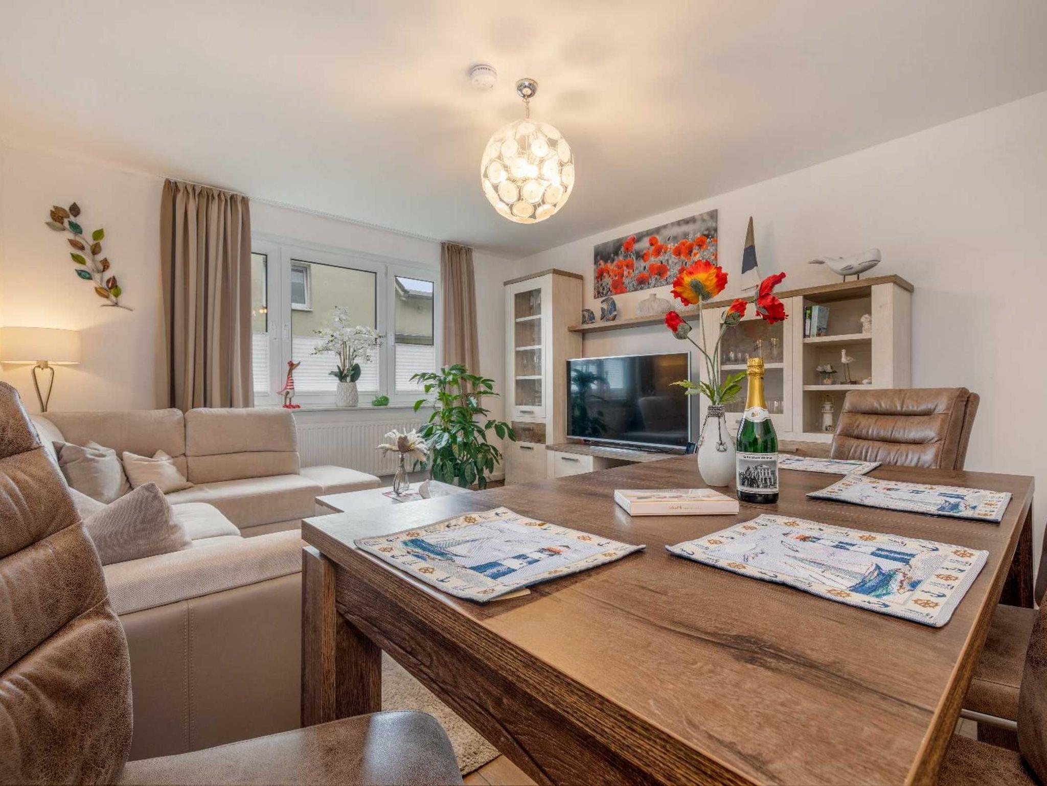 Das Wohnzimmer hat einen großen Flachbild-TV sowie Essecke. Die gesamte Wohneinheit ist barrierefrei und mit Einschränkungen für Rollstuhlfahrer geeignet - bitte direkte Anfragen stellen.