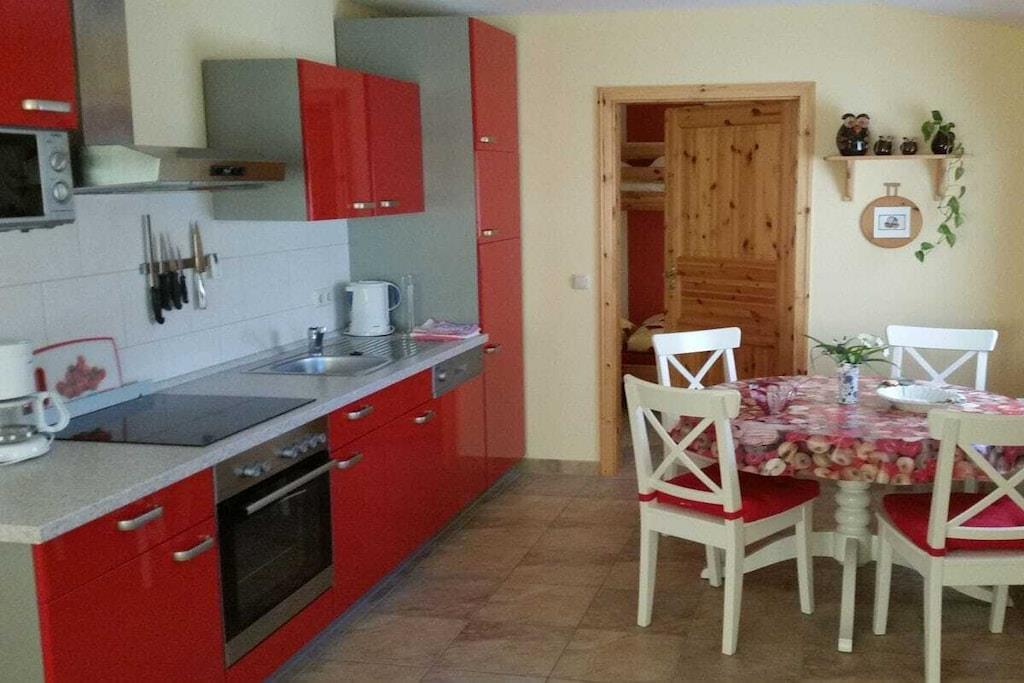 Werte Gäste, unsere 55m² große Ferienwohnung ist ca. 200m vom Ostufer des Plauer See's entfernt. Die Nähe zum See, die beschauliche, ruhige Randlage zeichnen diese Unterkunft aus. Es gibt eine große Wiese (2000m²) wo Sie sich mit Ihren Kindern und auch Hunden frei bewegen können. In wohltuender Atmosphäre können Sie entspannen und schöne Tage in freier Natur genießen. Die anliegende Terrasse bietet dazu einen herrlichen Ausblick auf die Pferdekoppel.