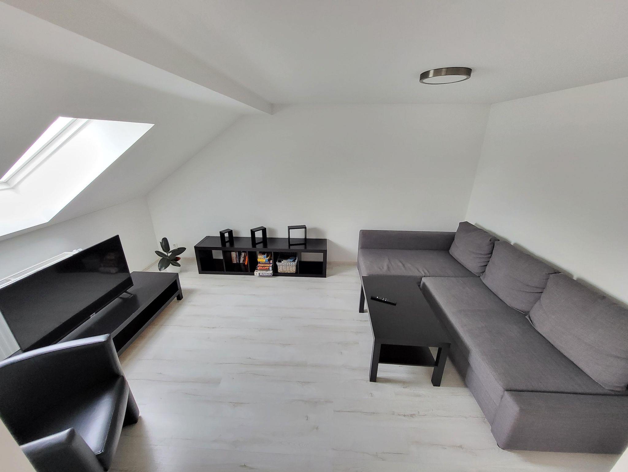 Die Ferienwohnung ist 75 m² groß und besteht aus 2 Schlafräumen, 1 Wohnraum, Küche, Bad und WC. Sie befindet sich im 3. OG Dachgeschoss (ohne Aufzug).