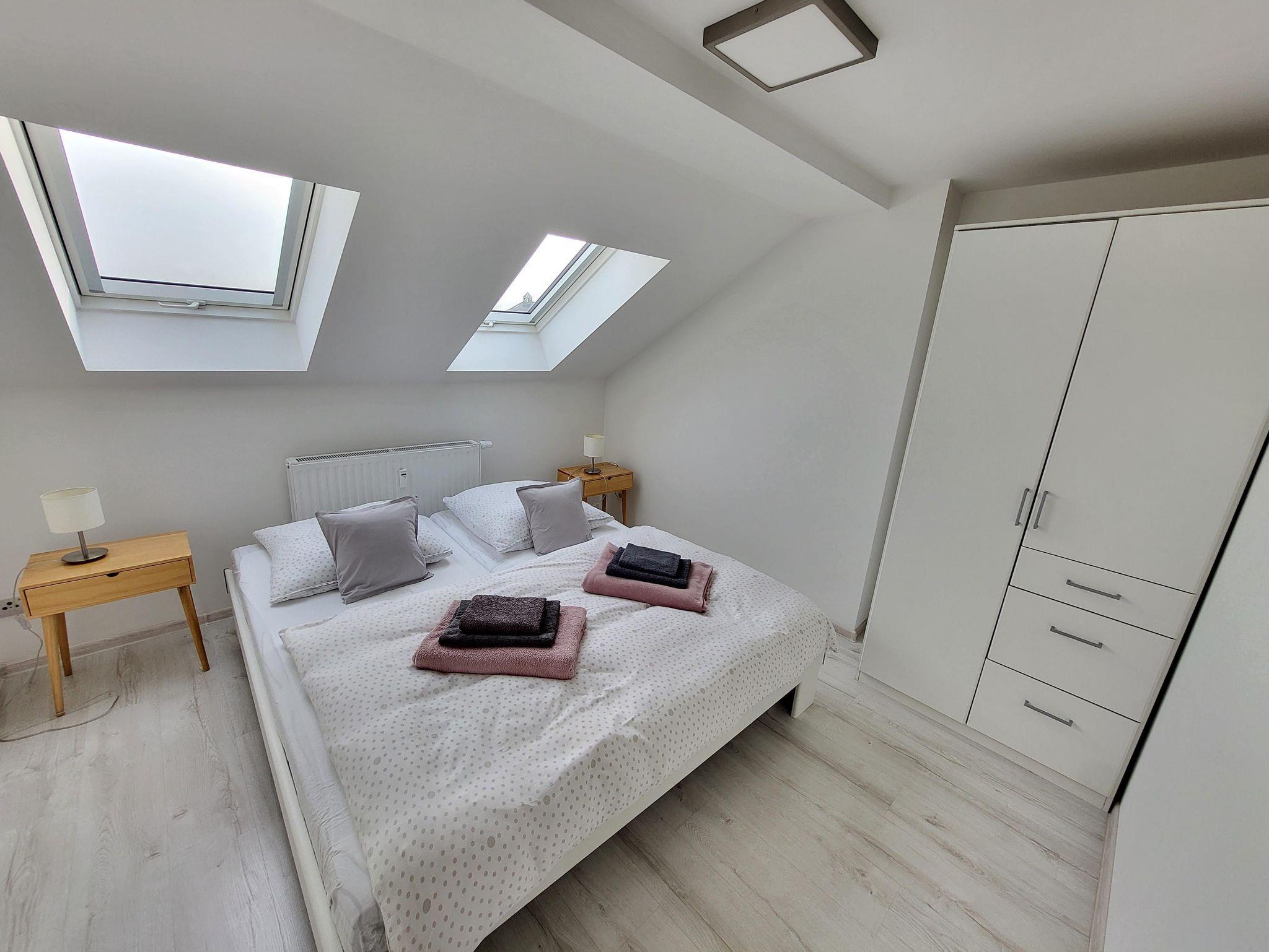 Die helle, modern eingerichtete und komfortable Ferienwohnung (ca. 75 m²) liegt zentral an der Bahnhofstraße in Zittau. Die Dachgeschosswohnung im 3.OG (kein Aufzug) befindet sich in unmittelbarer Nähe zur historischen Innenstadt sowie dem Bahnhof/ Schmalspurbahn. Die Wohnung verfügt über eine gut ausgestattete Küche mit Esstisch, ein Wohnzimmer mit Couch und TV und zwei getrennte Schlaffzimmer. Ein PKW-Stellplatz ist vorhanden. Bettwäsche, Hand- und Badetücher, Toilettenpapier, Seife & Shampoo sind im Preis enthalten. Fön und eine Waschmaschine stehen Ihnen auch zur Verfügung. Im Erdgeschoss des Hauses können Sie im Restaurant MISTER BALES ein Abendessen und oder einen Cocktail genießen.