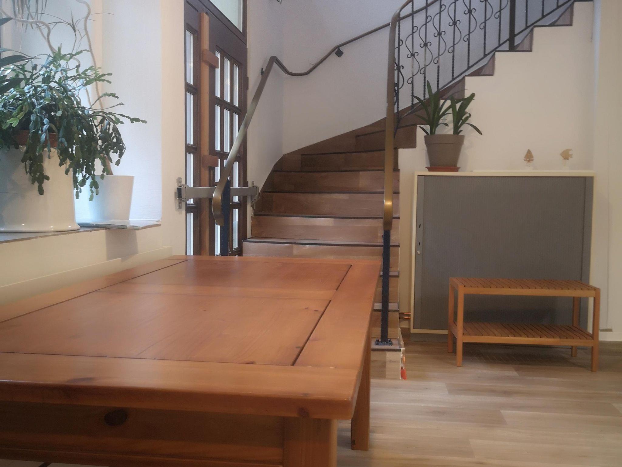 Der Eingangsbereich und das Badezimmer befinden sich im Erdgeschoss, der Wohn- und Schlafbereich im Obergeschoss.
