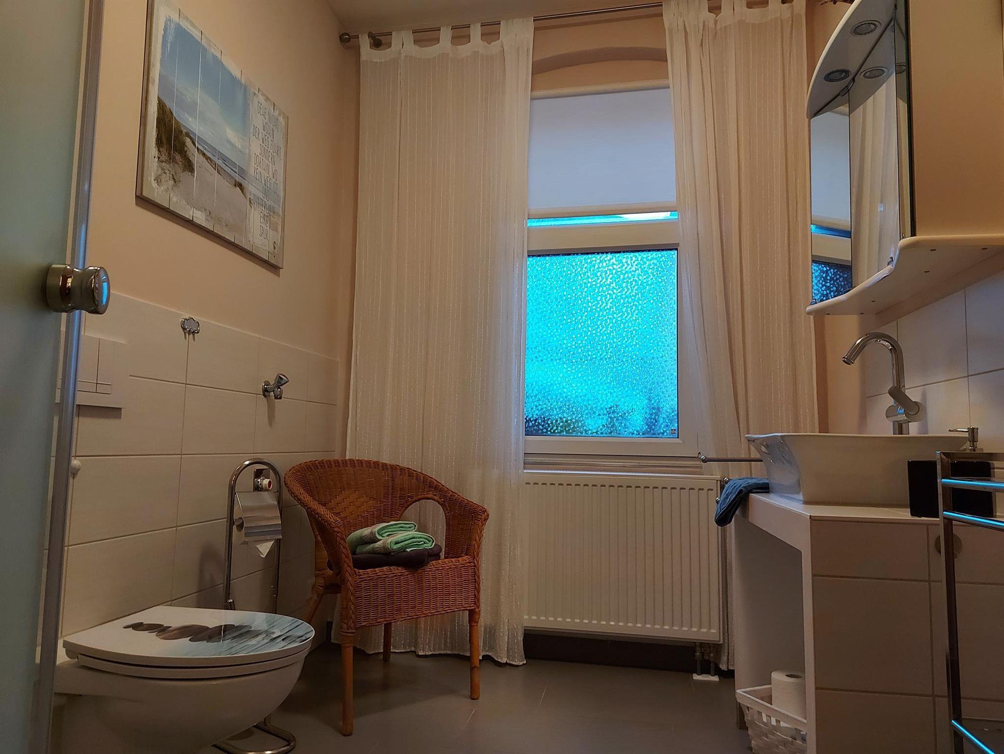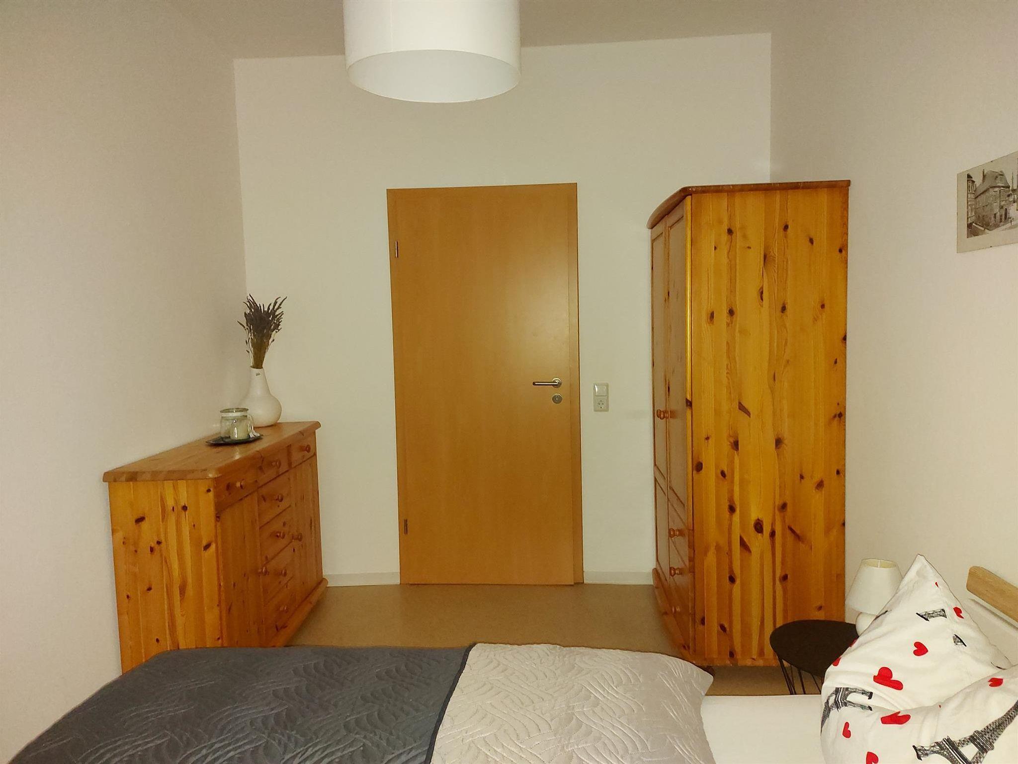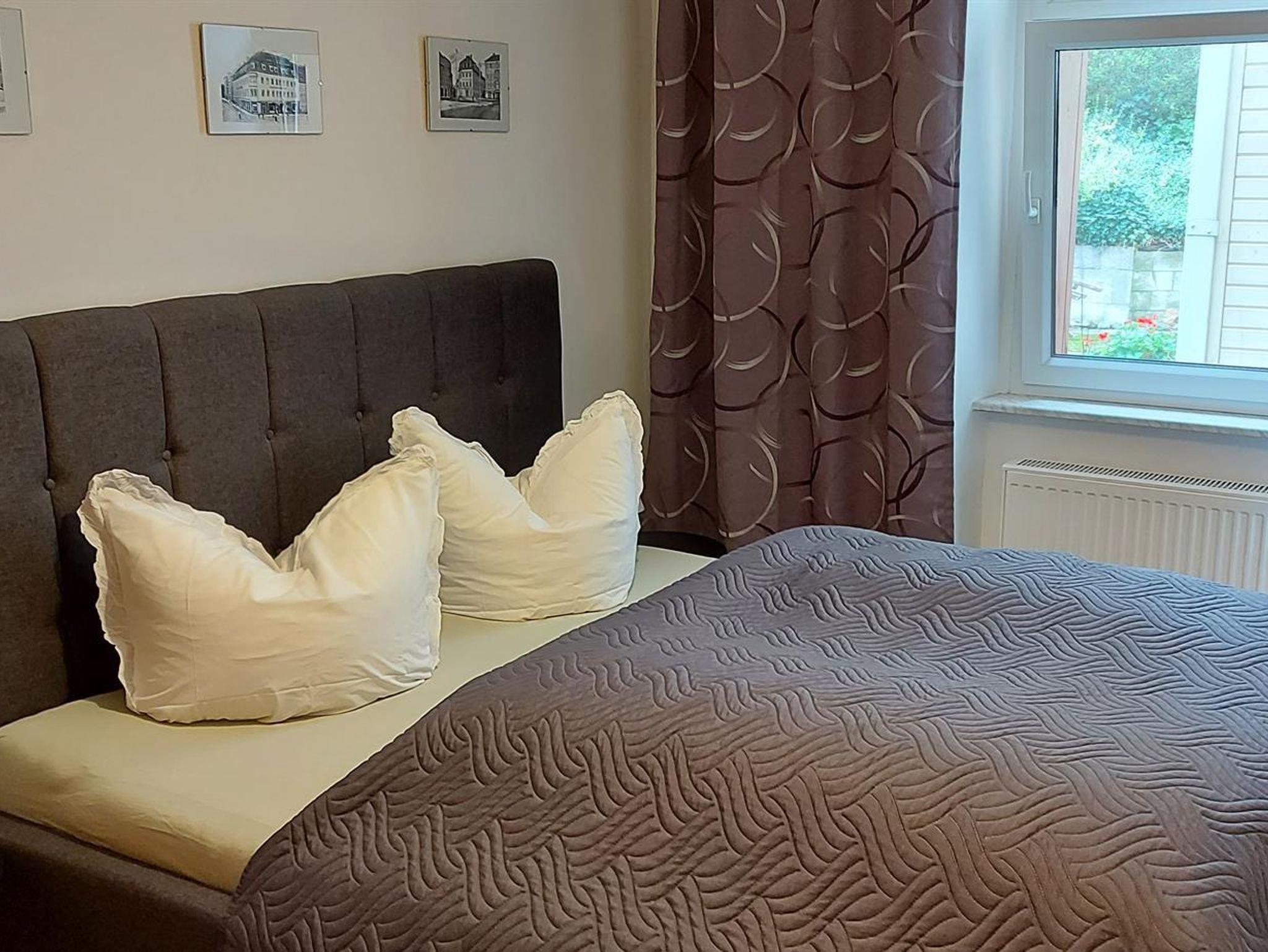 Die Ferienwohnung Bei Hanna, benannt nach der guten Seele des Hauses, ist im 1. OG gelegen und 71 m² groß, hell und geräumig und mit einem Balkon zur Gartenseite versehen, auf dem Sie den Tag in Ruhe ausklingen lassen können. Sie finden einen separaten Schlafraum mit einem komfortablen Doppelbett, ruhig gelegen zur Rückseite des Hauses, und eine zusätzliche Schlafcouch in einem abgetrennten Bereich für weitere 2 Gäste vor. Die Wohnung ist modern ausgestattet, in der Küche können Sie Mikrowelle, Spülmaschine, Kühl- und Gefrierschrank nutzen. Das großzügige Bad verfügt über eine bodengleiche Dusche und ist hell und freundlich. In der Wohnung sind Flat-, Kabel-TV sowie Internet vorhanden. Die Zustellung eines Kinderbettes ist möglich und auch für Fahrräder gibt es im Haus einen separaten Abstellraum. Parkmöglichkeiten gibt es vor dem Haus oder ca. 2 Gehminuten entfernt, kostenfrei außerhalb des Stadtringes.