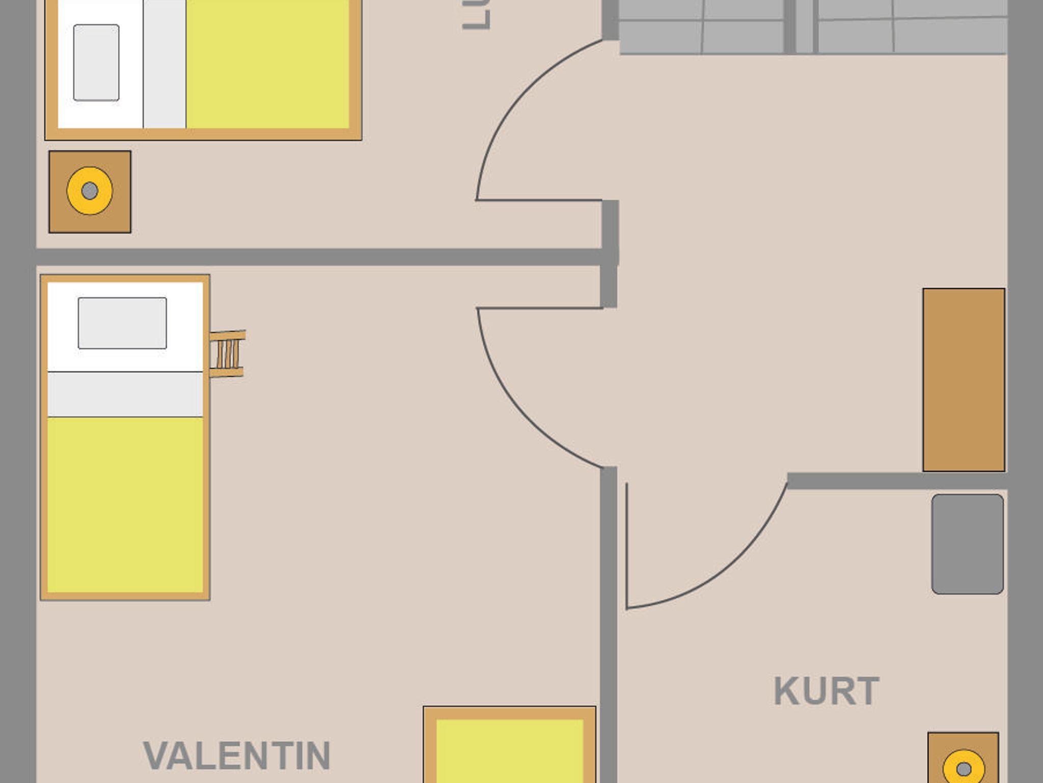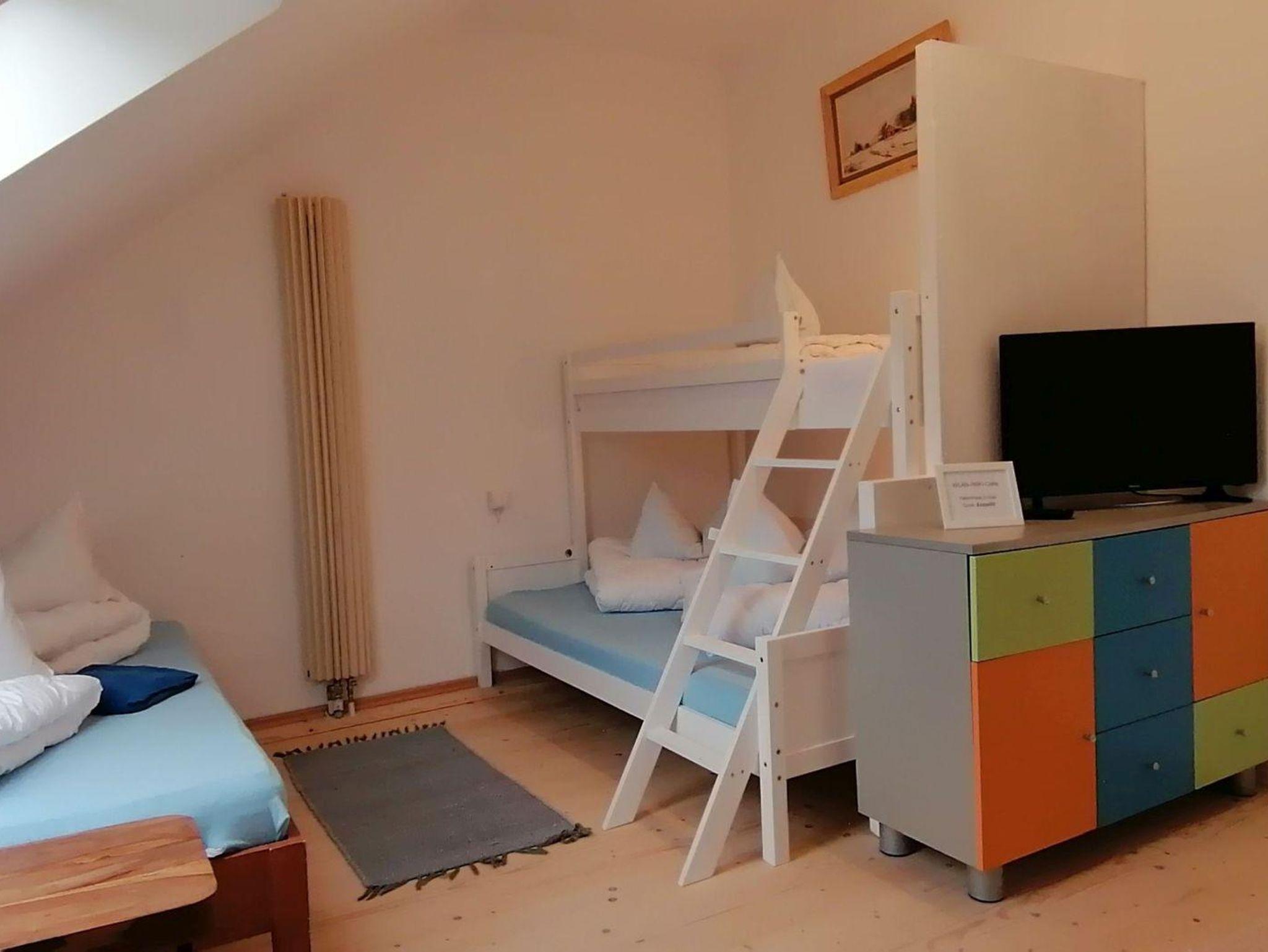 Insgesamt gibt es fünf Schlafzimmer, in denen bis zu zehn Jugendliche/Erwachsene, vier Kinder und ein Baby schlafen können. Zur Auswahl stehen Doppelzimmer, Dreifachzimmer und Mehrbettzimmer.