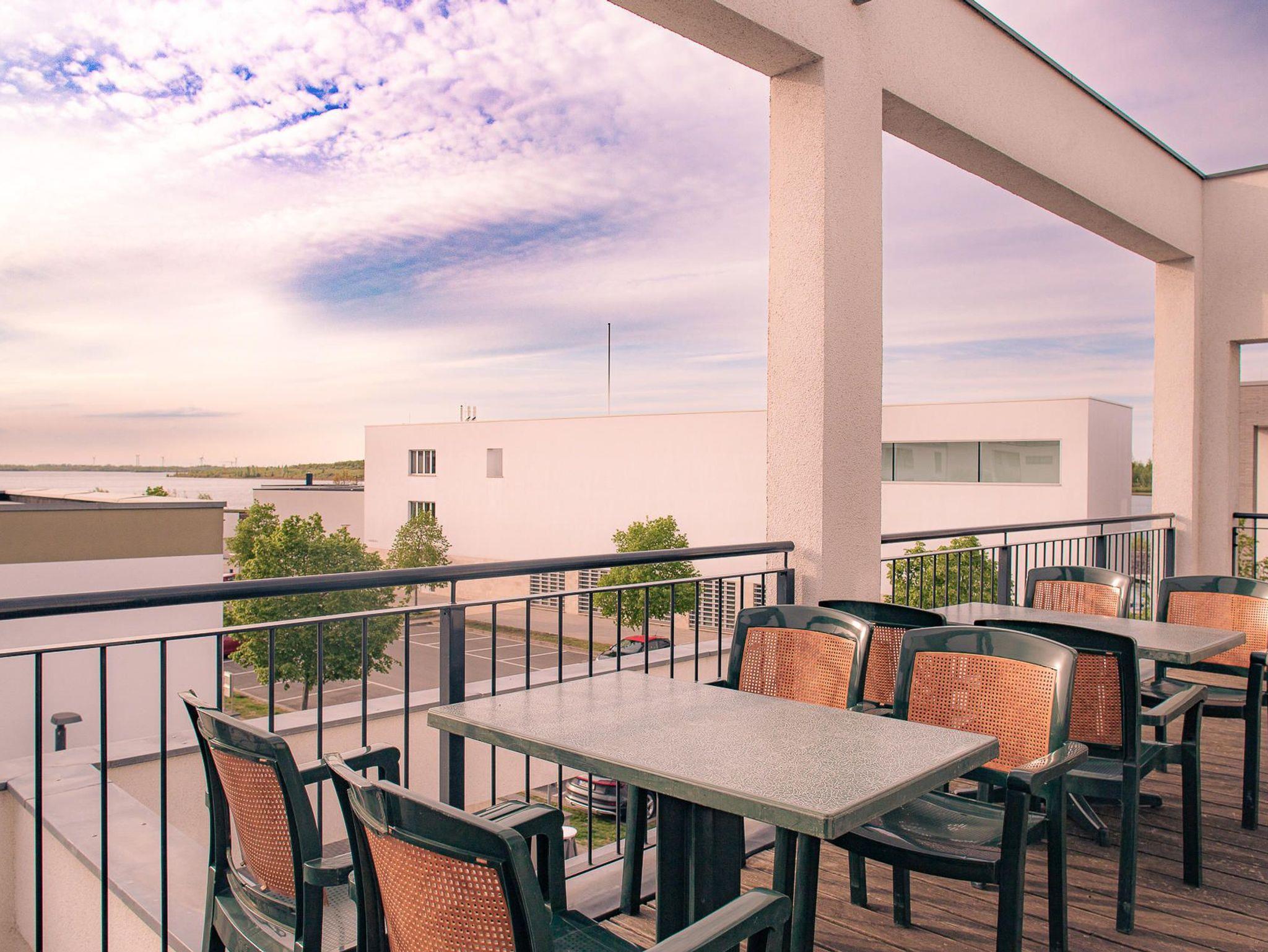 schallisolierte Wände, eine Kaffeemaschine und einen großzügigen Balkon beim