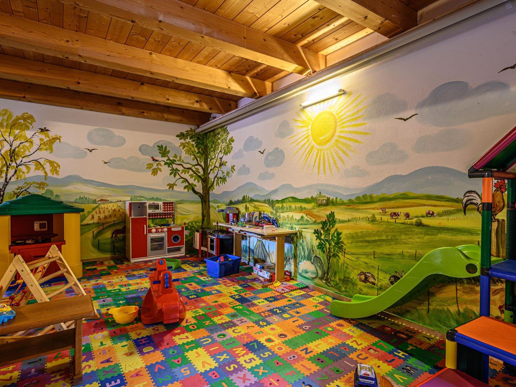 Zudem bieten wir Ihnen: Babyausstattung , Waschmaschine + Trockner, Liegewiese, Parkplatz, Tischtennis, Saunalandschaft, Aufenthaltsraum, Grillplatz, Brötchenservice, Streichelzoo, Schlittenverleih, Spielzimmer, Spielscheune, kostenloses Ponyreiten außer Sonntags und Mittwochs.