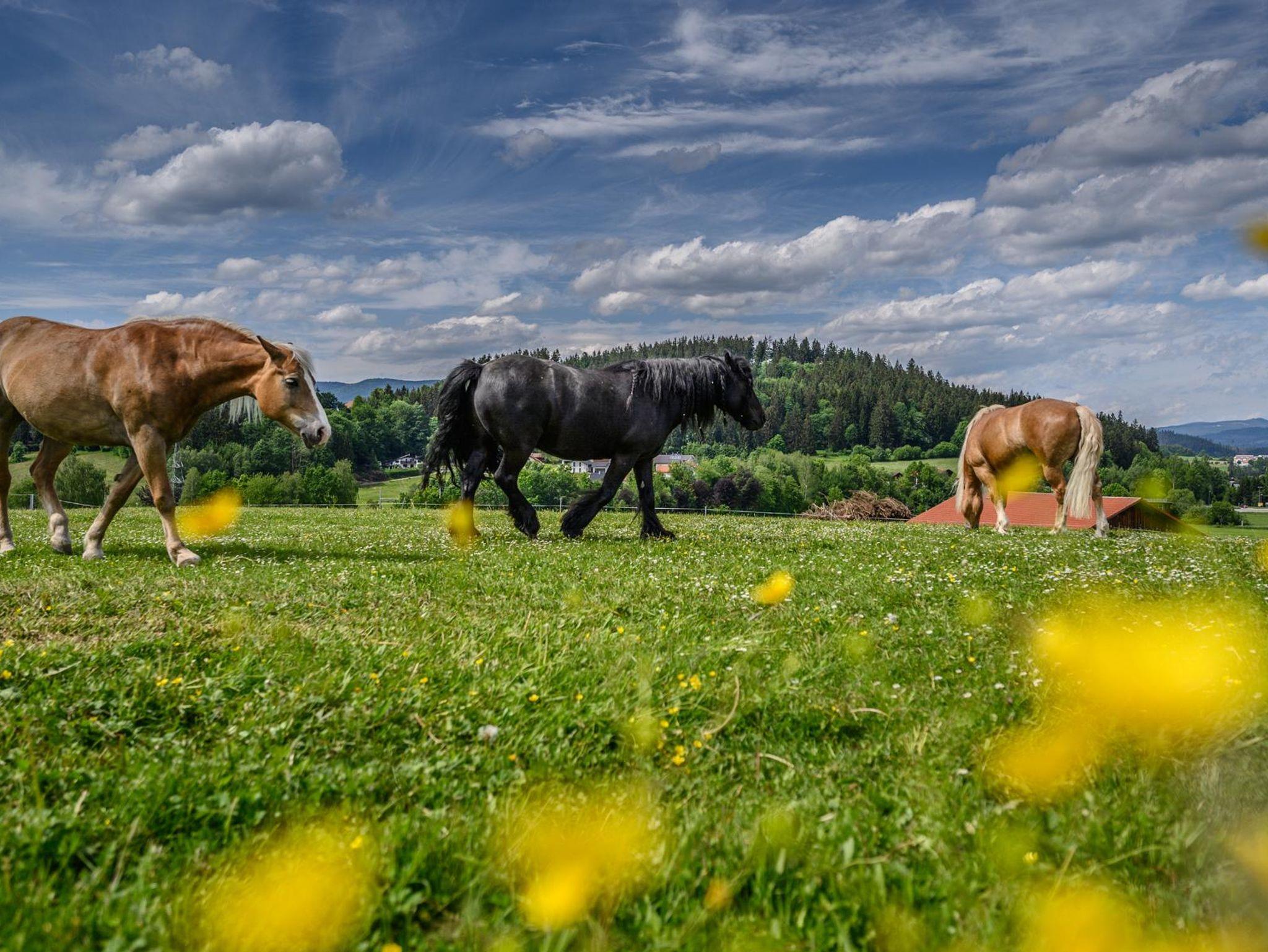 Sie wohnen auf einem Biobauernhof mit Kühen und Kälbern.Reiterferien für die ganze Familie. In unserer Reithalle bieten wir Reitunterricht für groß oder klein. Für die Kleinsten finden sie eine Heuburg Spielscheune Spielplatz und Spielzimmer mit einem großem Kettcar- Fuhrpark. Für die Großen eine 100qm große Saunalandschaft mit zwei Saunen, Infrarotkabine, Wintergarten und Whirlpool. In den urgemütlichen vom Schreiner gefertigten Ferienwohnungen werden Sie sich bestimmt wohl fühlen.