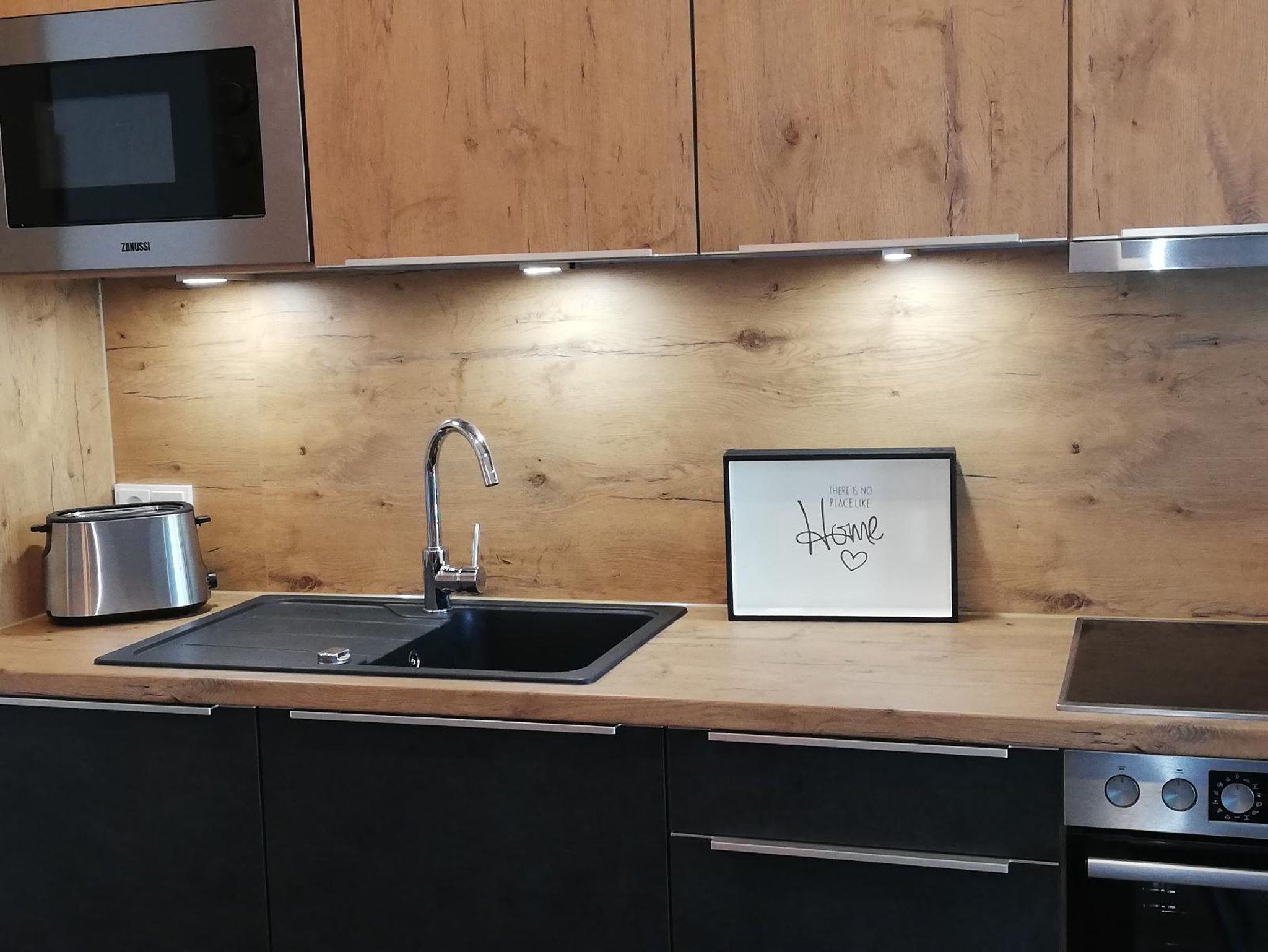 Unsere Küchen sind mit hochwertigen Geräten ausgestattet. Außerdem finden Sie eine Grundausstattung an Gewürzen, Essig/Öl, eine kleine Tee-Auswahl sowie einen gefüllten Kaffee-Vollautomaten vor.