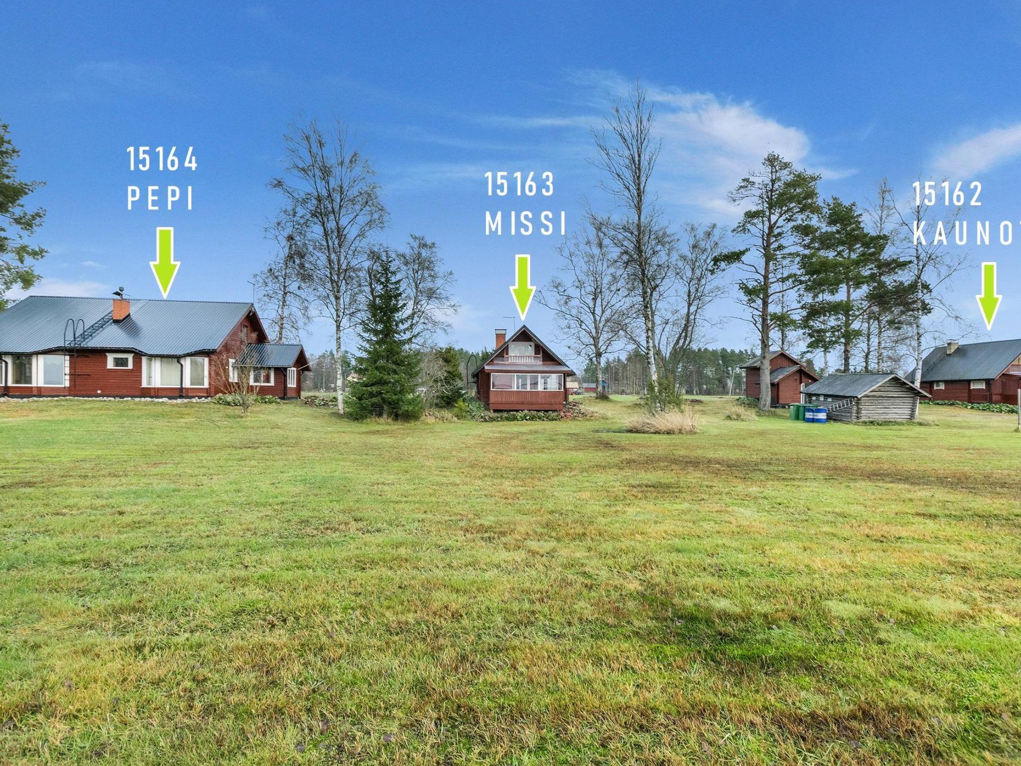 Log-built cabin (1994), spacious and partially glazed terrace, living room with heat reserving soapstone fireplace, living room/kitchen, sauna (wood-burning sauna stove) washroom with WC. On the upper floor, bedroom with low slope ceiling (160 x 200 cm spring mattress on the floor) and lobby (2 x 80 x 200 cm foam mattress on the floor). Wood storage and waste collection between cabins 15162 Kaunotar and 15163 Missi. The cottage is suitable for year-round use.