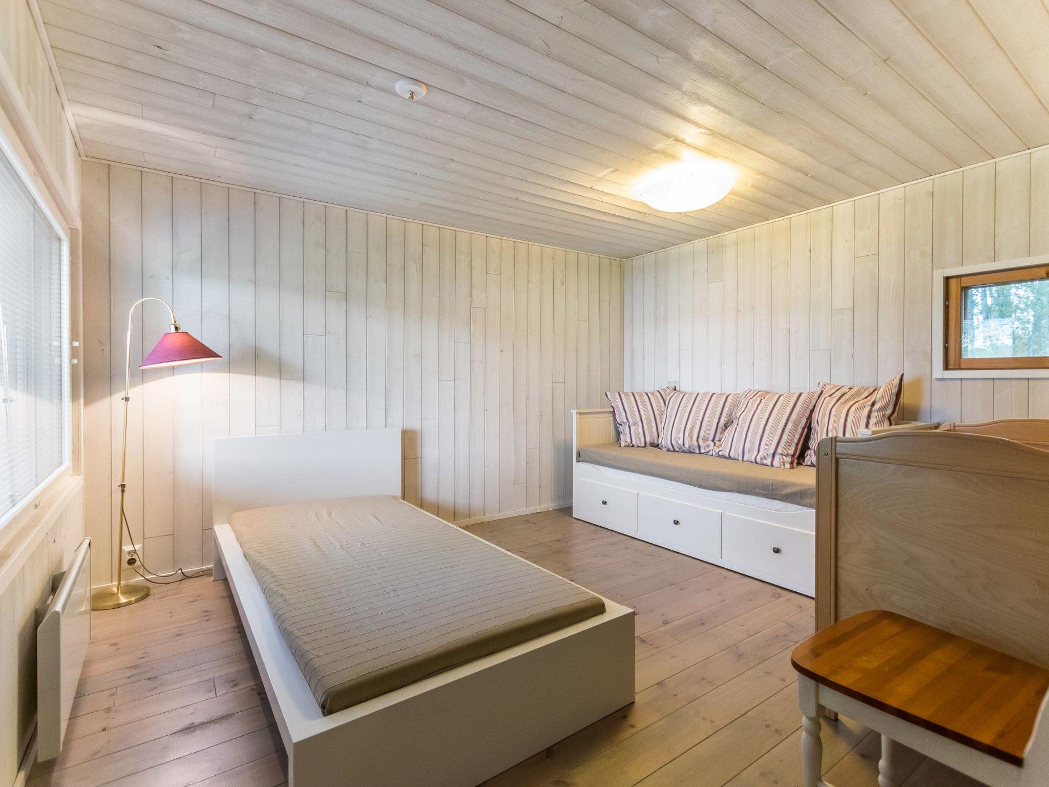 55 km nordwestlich von Tampere, Kyrösjärvi 20 m (Länge 30 km, Breite 5 km), flacher und weicher geschliffener Boden, eigenes Boot. Holzgebäude, Baujahr 1980, erweitert im Jahr 2000, Wohnküche, 2 Schlafzimmer mit je 2 Betten, Schlafzimmer mit 1 Bett + Etagenbett (Zugang über die Veranda), Ankleideraum, Sauna, Veranda. Luftwärmepumpe. Ikaalisten Spa, Skipisten 2.5 km. Reiten 8 km. Schwimmwesten auf Anfrage.