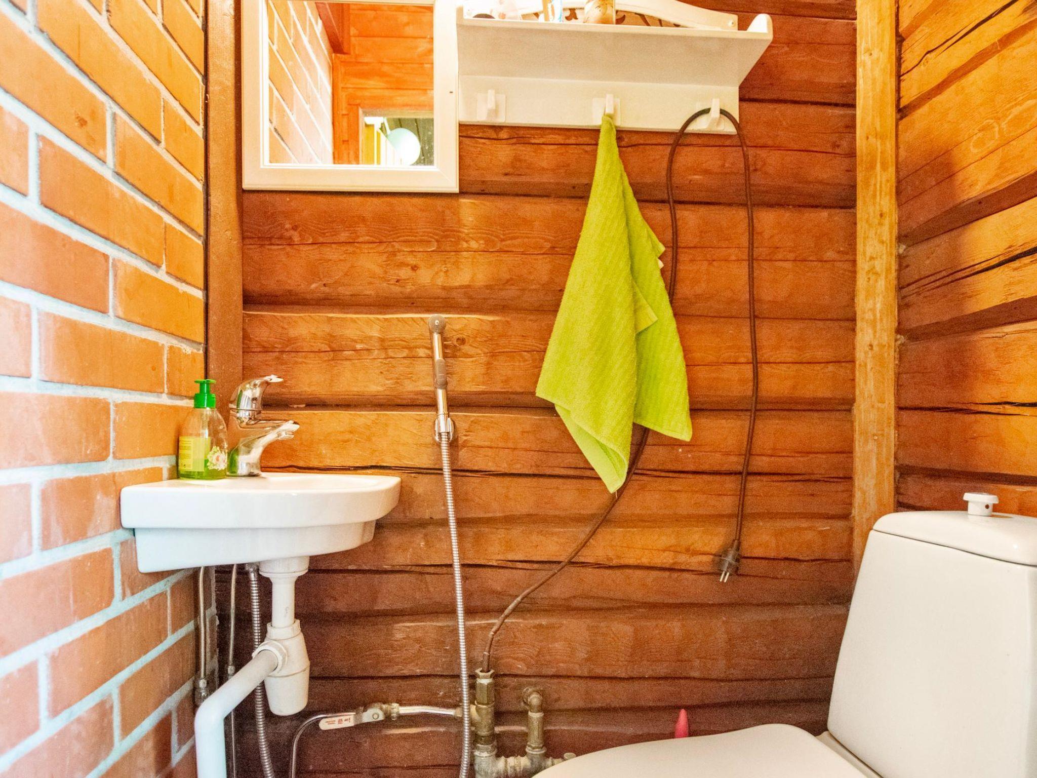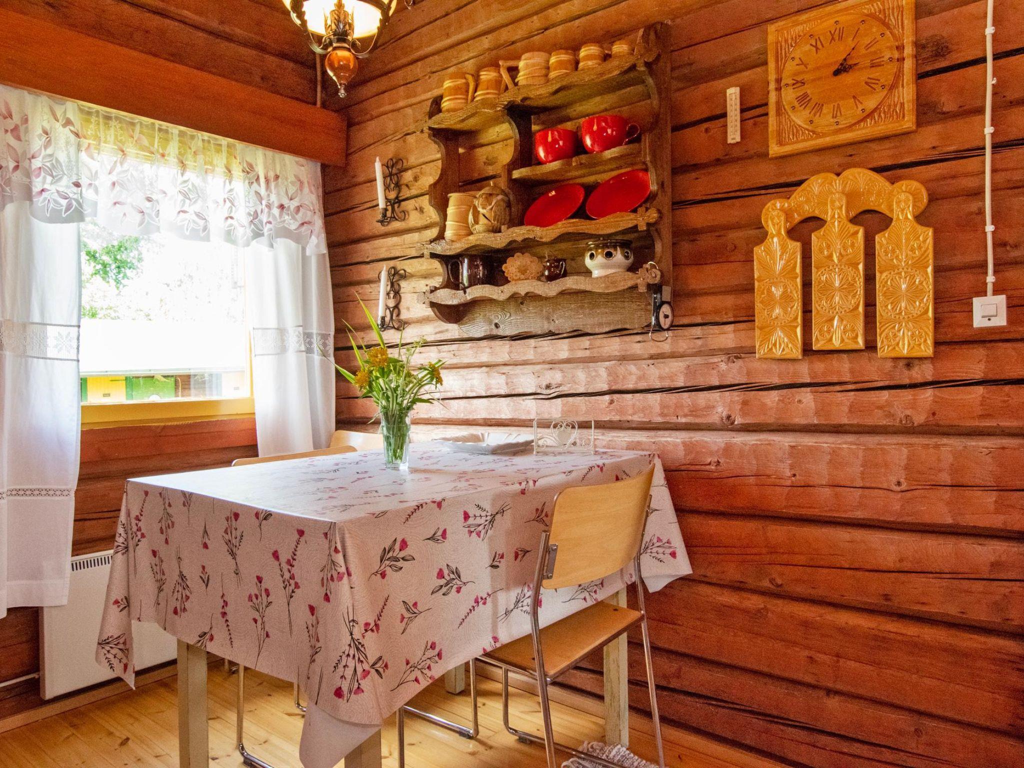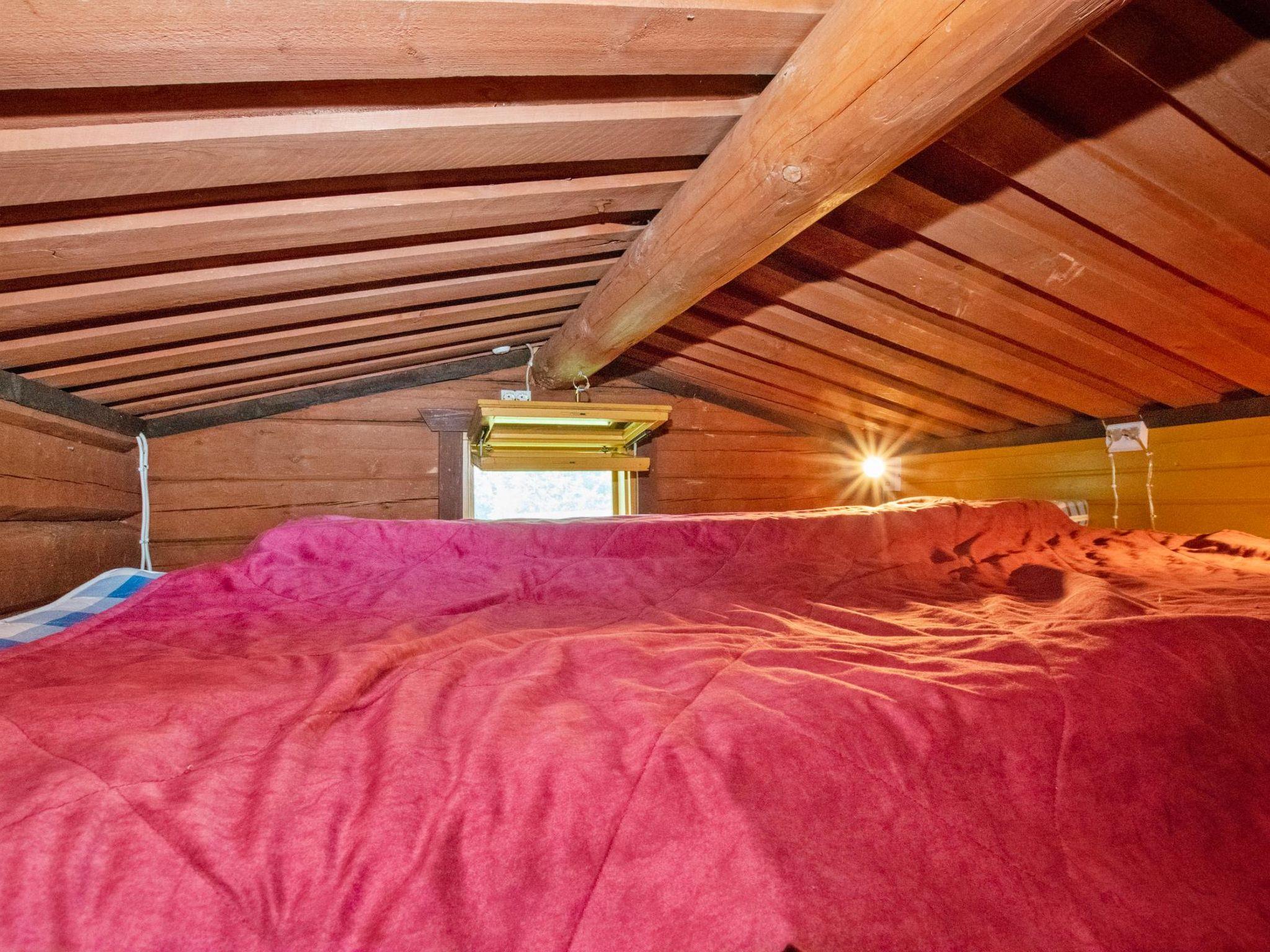 The cabin has a cozy atmosphere. The cabin has living area (sofa bed 140 x 190 cm, with bed for two), bedroom (double bed), kitchen and sleeping loft (two mattresses), steep stairs to the loft. Sauna (wood-burning sauna stove), washroom and WC.