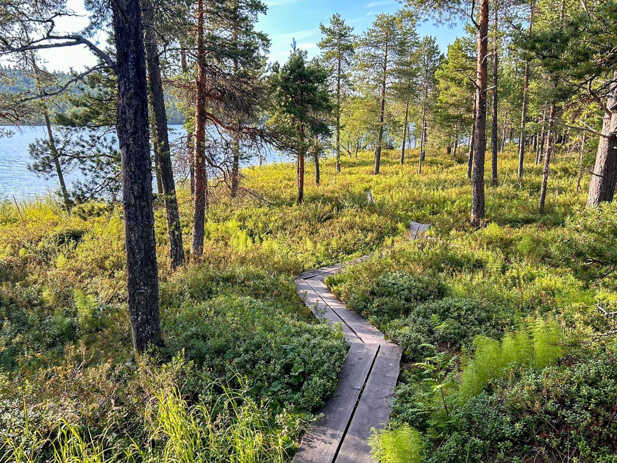 305 km nördlich von Rovaniemi, See Inarijärvi, auf der Insel Nanguvuono (Salmenniemensaari), die Länge der Insel 850 m, Entfernung vom Festland 180 m, Bootsfahrt 1 km vom Bootsanleger entfernt (der Hausmeister begleitet Sie bei Bedarf zum Ferienhaus), 3 Ruderboote, flaches Wasser, Sandboden, Steg. Ferienhaus aus Kiefernholz, Baujahr 1971, später erweitert. Wohnzimmer mit Etagenbett aus Kiefernholz (unteres Bett 160 cm und oberes 80 cm breit), 2 Schlafzimmer mit je 2 Betten, Küche, Sauna (Holzofen, Heiztank, Dusche), Ankleideraum mit 1 Bett, Terrasse, Veranda. Öko-Toilette im Haus, zusätzlich eine Aussentoilette. Räucherofen und Kamin. Geräumige Wildnisvilla auf einer Insel am See Inarijärvi. Gute Angelmöglichkeiten. 2 Fischernetz-Lizenzen stehen den Gästen zur Verfügung. Der Haumeister vermietet einen Aussenborder. Es muss aber eine Kaution, in Höhe von € 250, hinterlegt werden. Bootsanlegestelle auf dem, 1 km entfernten, Festland. Es muss eine Kaution, in Höhe von € 150, vor Ort hinterlegt werden.
