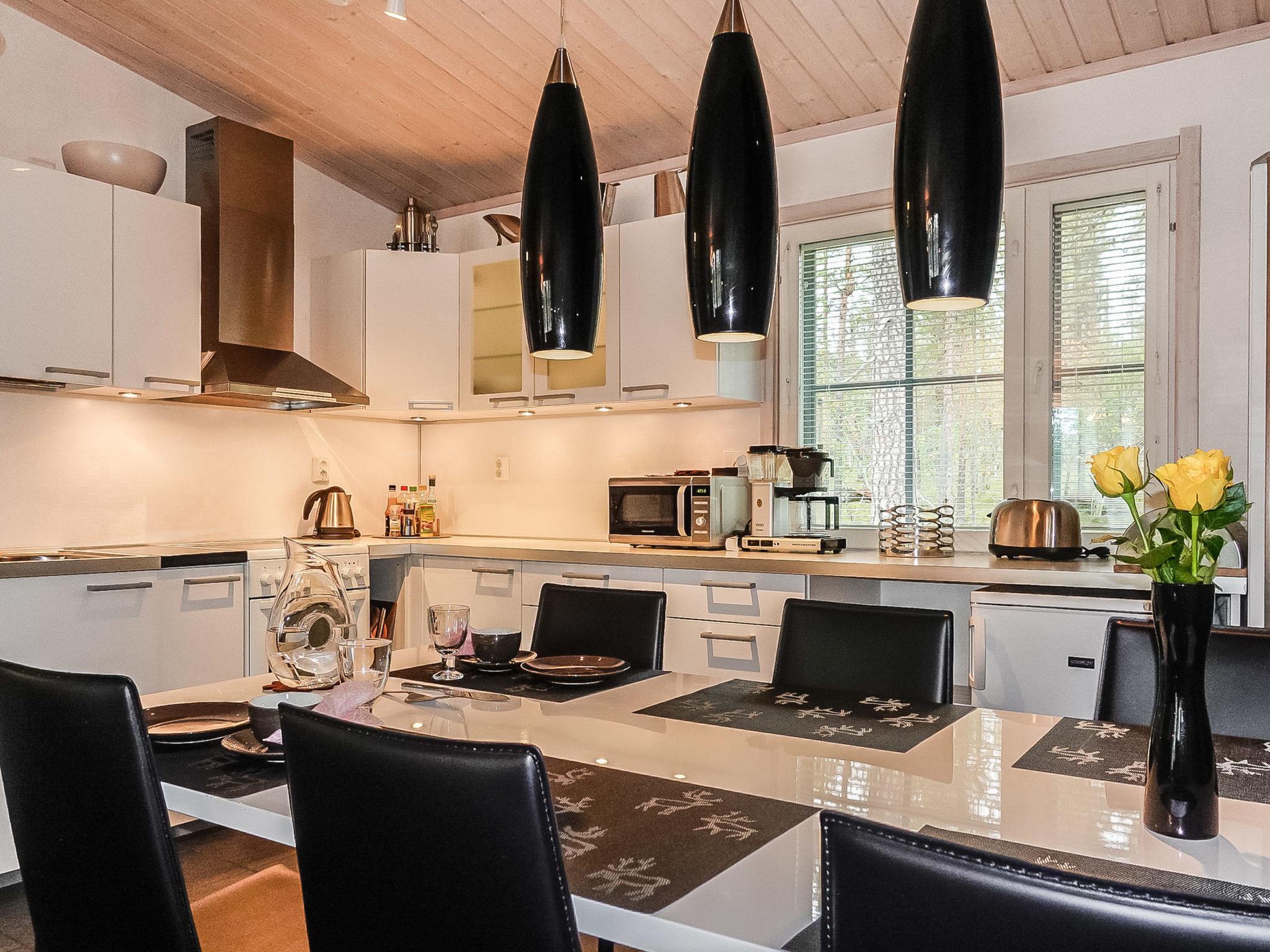 Maximal 1 Haustier/Hund erlaubt. 250 km nördlich von Rovaniemi, Saariselkä 13 km (Kiilopää 3.5 km). Block-Villa, Baujahr 2009, Wohnküche mit Schlafcouch, 2 Schlafzimmer mit je 2 Betten, Sauna, Waschraum, Hauswirtschaftsraum, separate Toilette und überdachte Terrasse. Garage. Aarrekammi ist eine geschmackvoll und elegant eingerichtete Villa, Geschirr für 12 Personen, Weinschrank, 2 Fernseher (zweiter im Schlafzimmer), Luftwärmepumpe usw. Guter Stauraum in den Schlafzimmern und in der modernen Saunaabteilung. Terrasse an der Südseite. Die Villa eignet sich auch für kleine Veranstaltungen. Ausserdem sind Kanu, Schwimmwesten (2 Stück), Mountainbike + Helme (2 Stück), Schneeschuhe (2 Paar), Wald-Ski (1), Tretschlitten und Schlitten (2 Stück) verfügbar. 400 Meter zum Nationalpark. Kiilopää Tunturiskeskus 3.5 km, Saariselkä 13 km. Flughafen-Bushaltestelle 600 m.