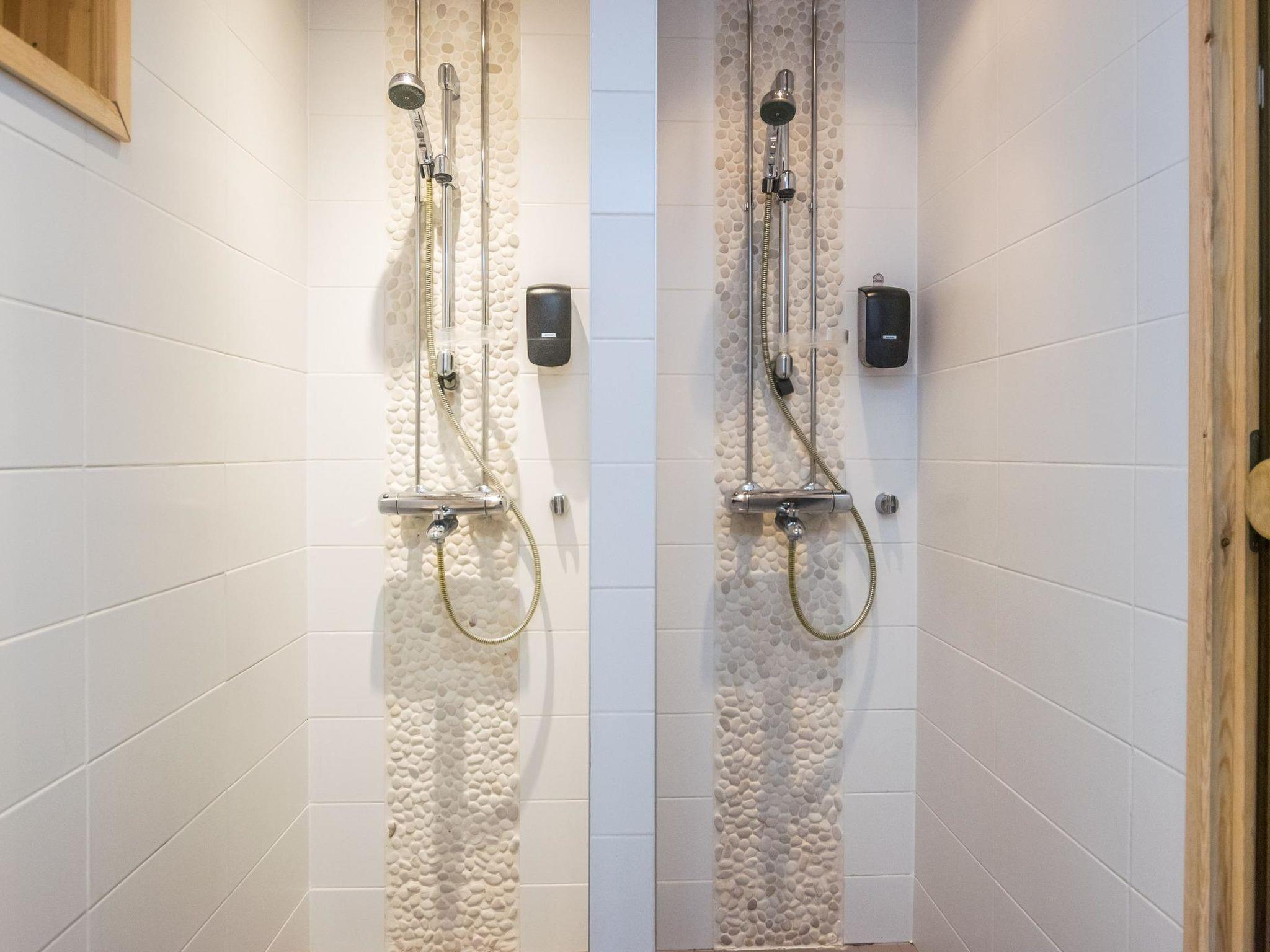 The bedrooms are located on the ground floor. Three bedrooms, each with two beds and a private toilet, provide plenty of private space and a peaceful place to sleep. From the living room there is a staircase to the loft with a lounge and an alcove with two beds.