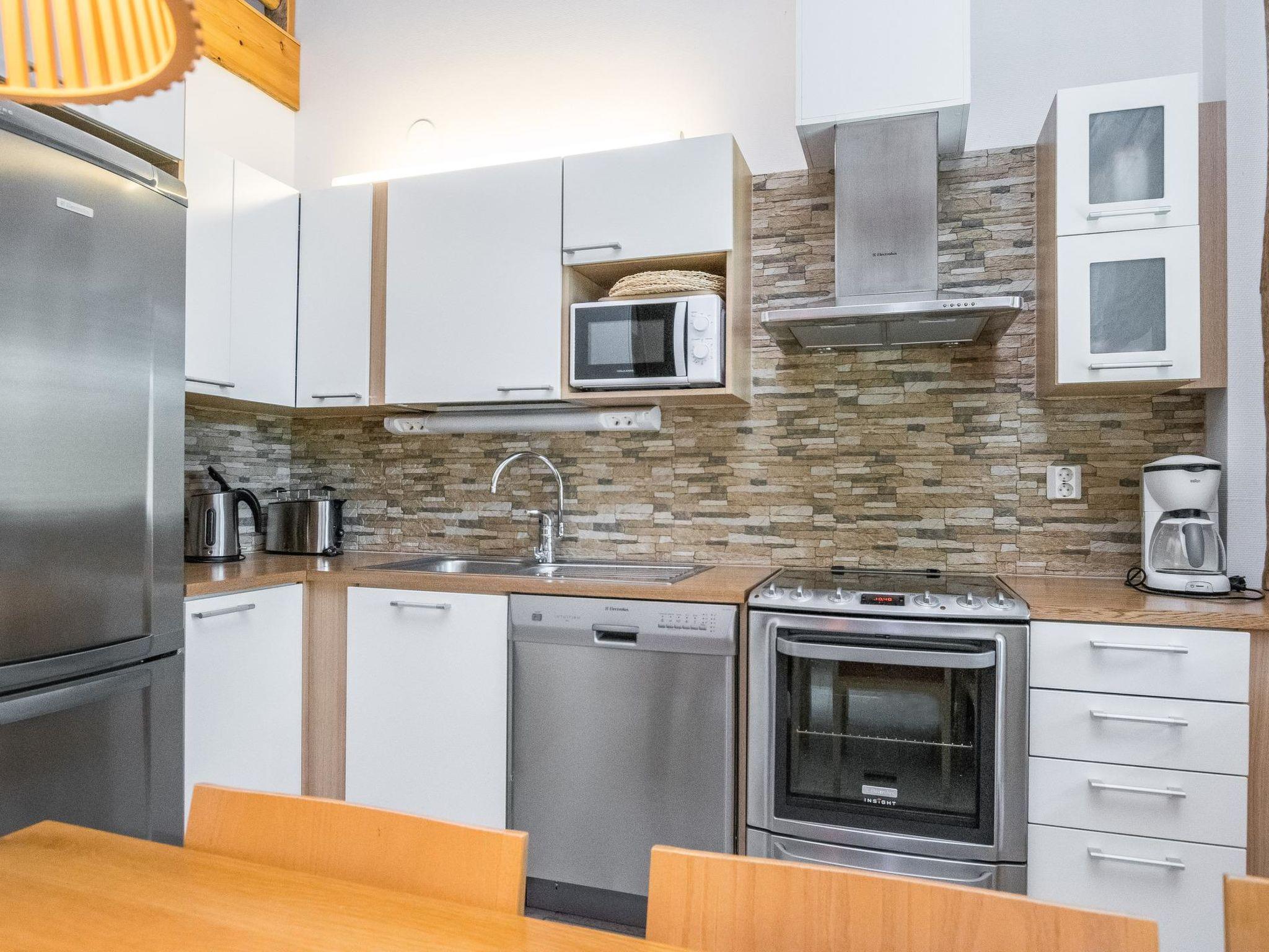 The cottage has a spacious kitchen/living room where you can prepare delicious meals, and in the living room you can relax watching TV or listening to the glow of the fireplace. There is also access to the terrace.