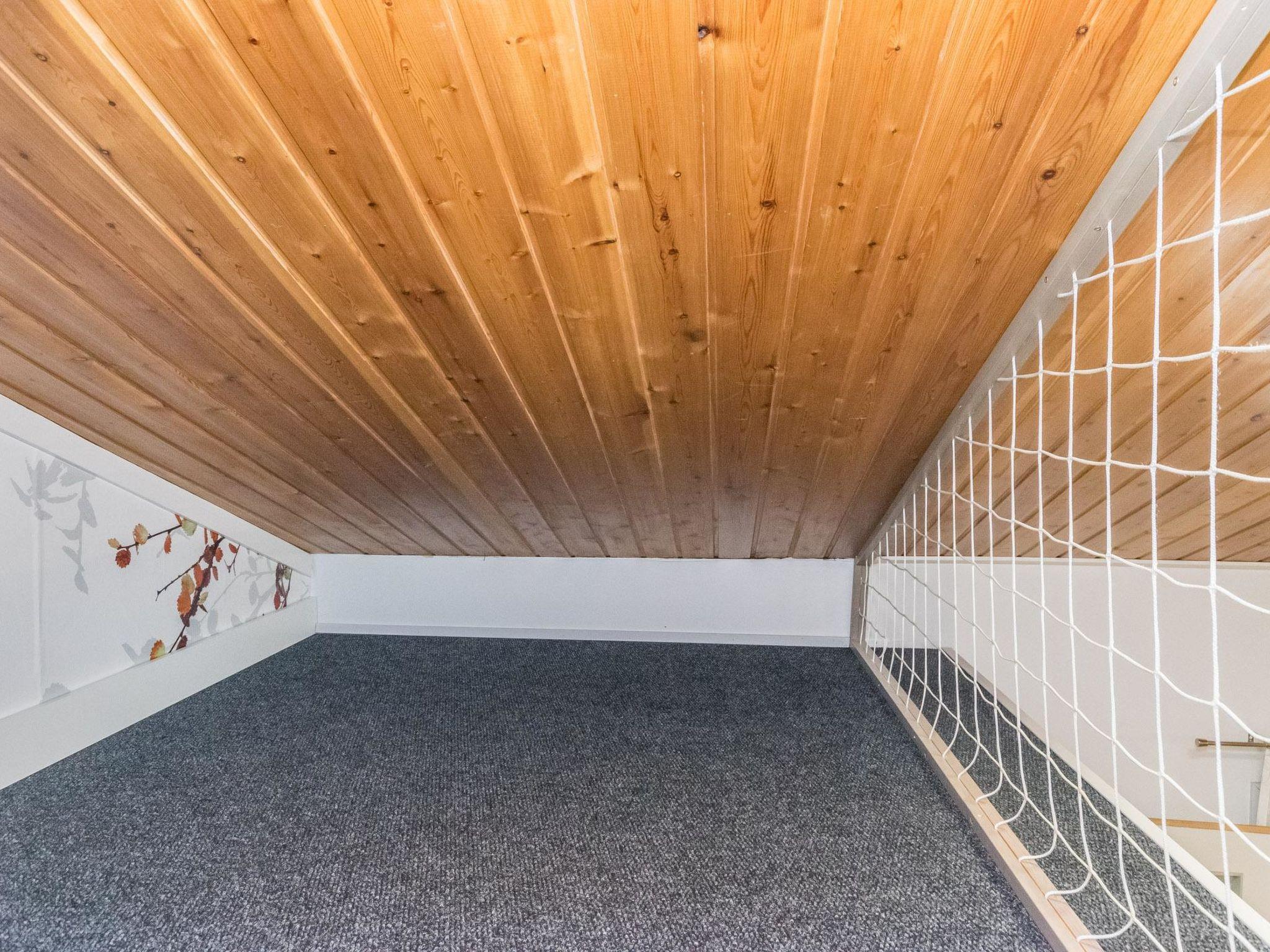 The ground floor bedroom has a double bed (double bed) and the two upstairs bedrooms each have two single beds.