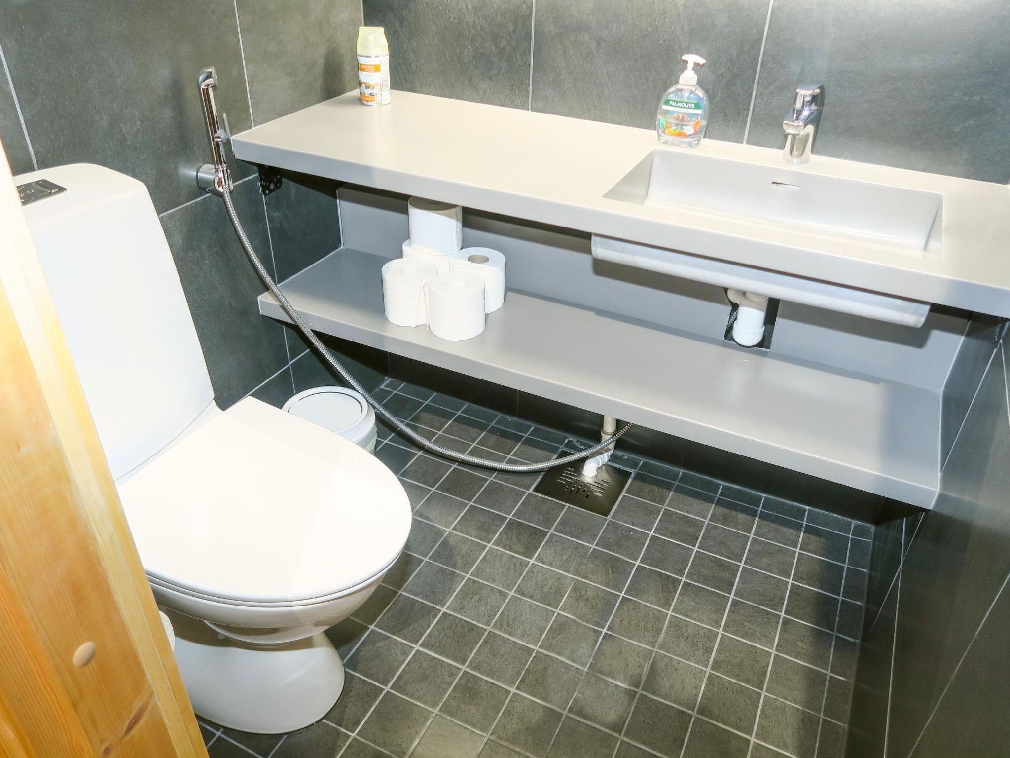 The 80 square meter apartment has a kitchen/living room, 3 bedrooms, a washroom, a sauna, a utility room/toilet and a toilet. A ski maintenance room with a lubrication stand is shared with the neighboring apartment. The ski maintenance room separates the apartments from each other.