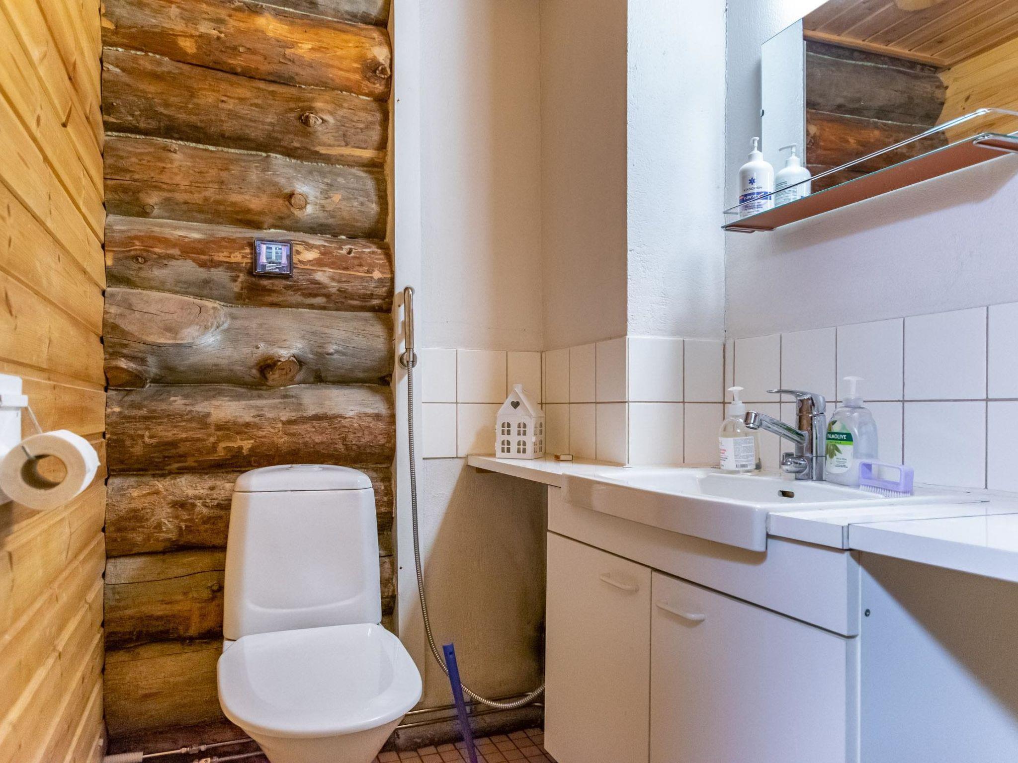 The wood-fired sauna is spacious and the benches are child-friendly. The tiled washroom has two showers and a toilet. There is also a separate toilet.