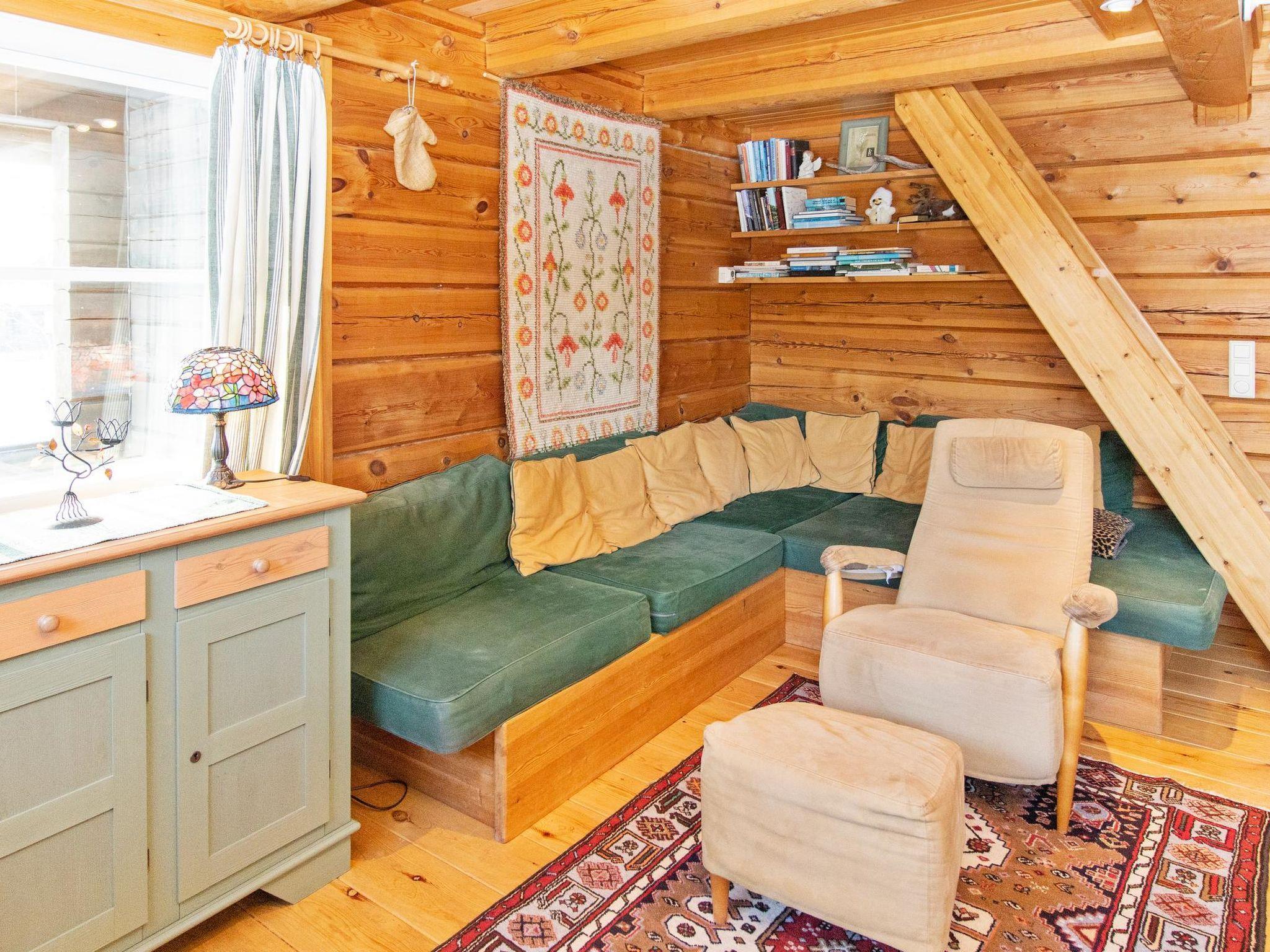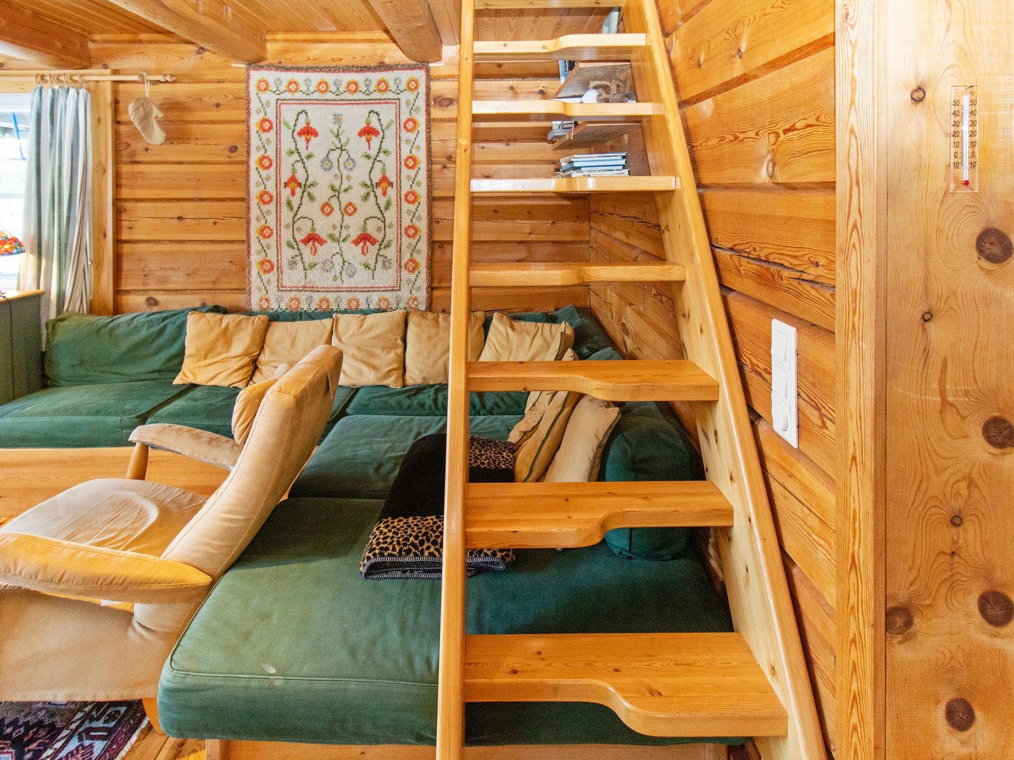 The 70-square-meter cabin has a kitchen, 2 bedrooms, a bathroom, a sauna, a toilet and a loft. Both bedrooms downstairs have a bunk bed (lower bed 120 cm and upper bed 80 cm) and in the loft there are two mattresses.