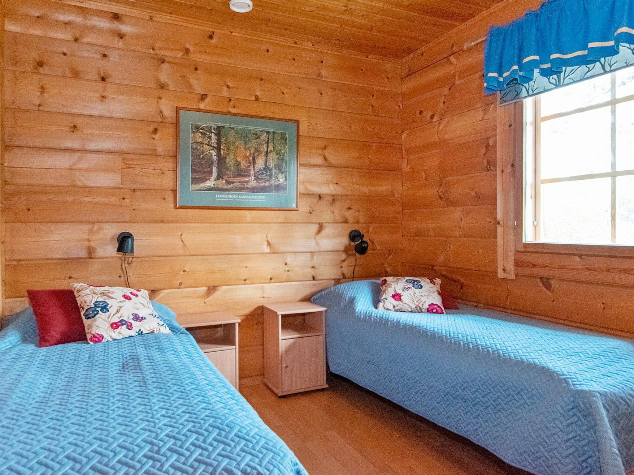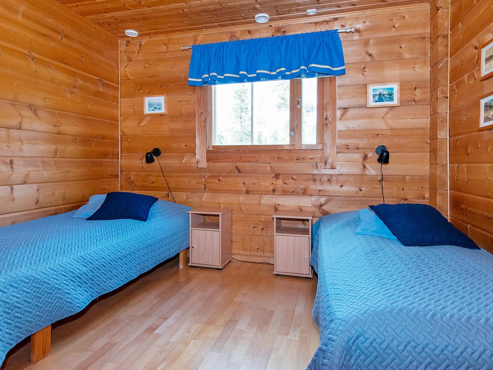 A colorfully decorated log cabin on Luttorinne area. While admiring the glow of the fireplace, you can see the atmospheric dance of the northern lights on the wall.