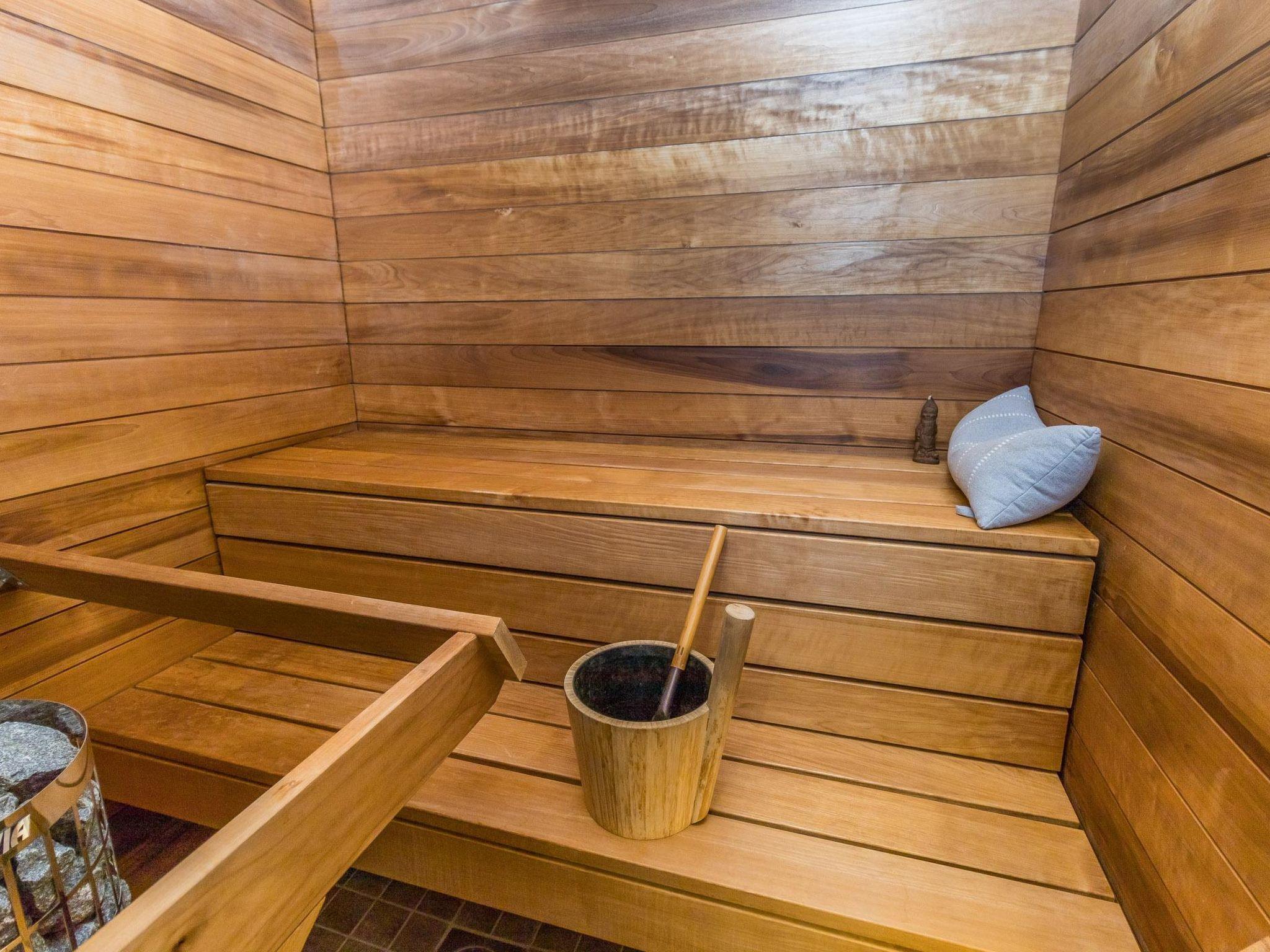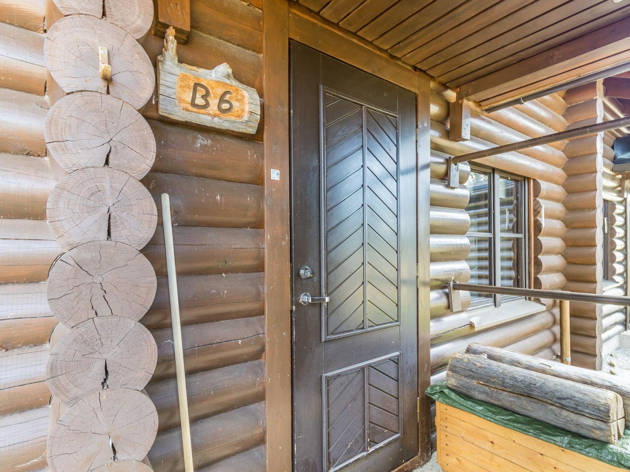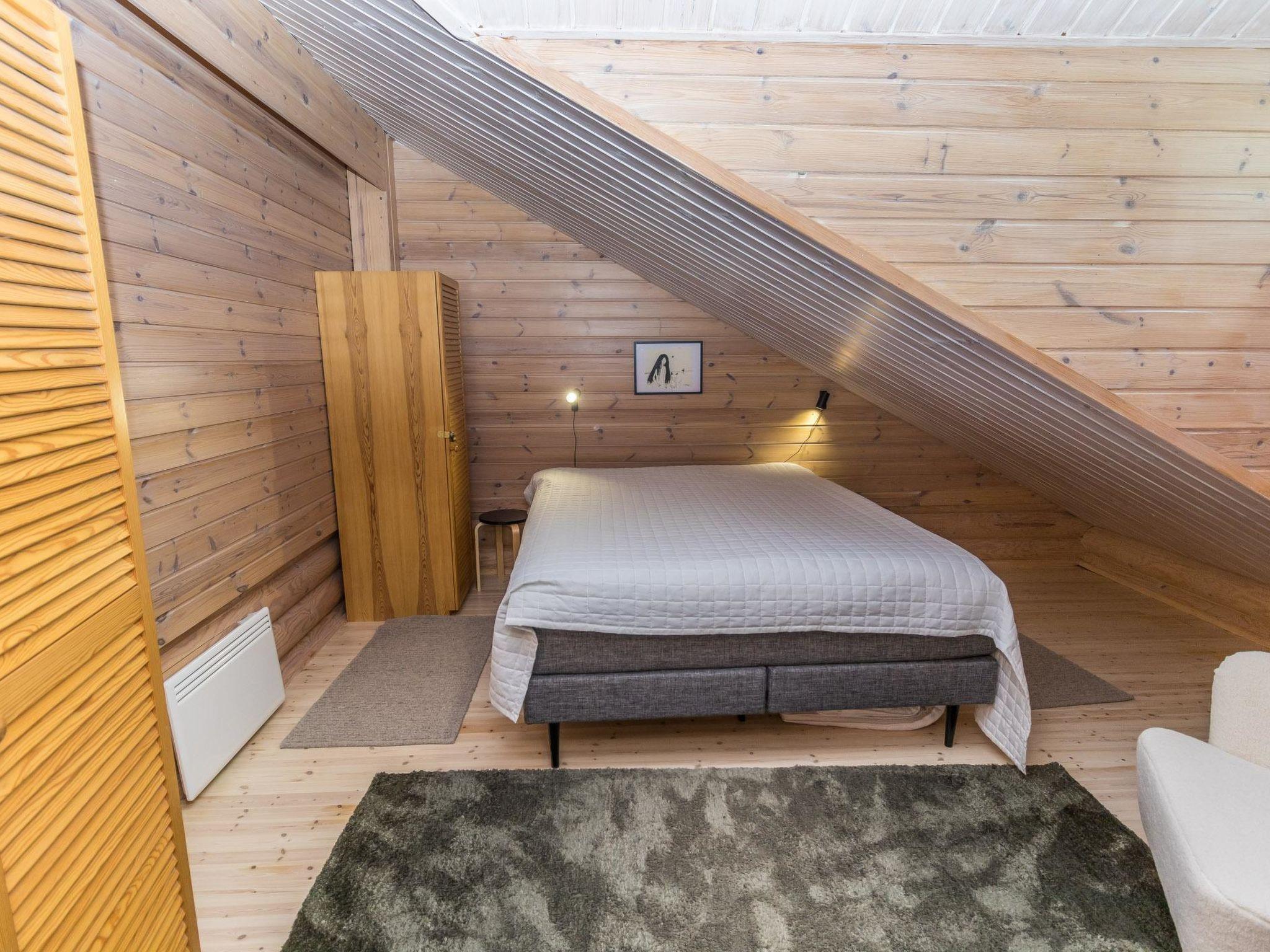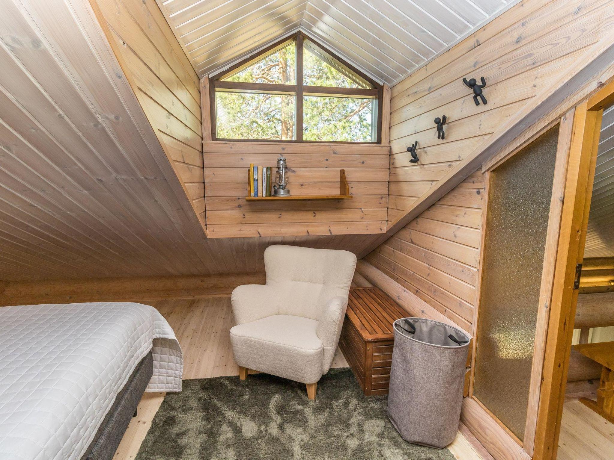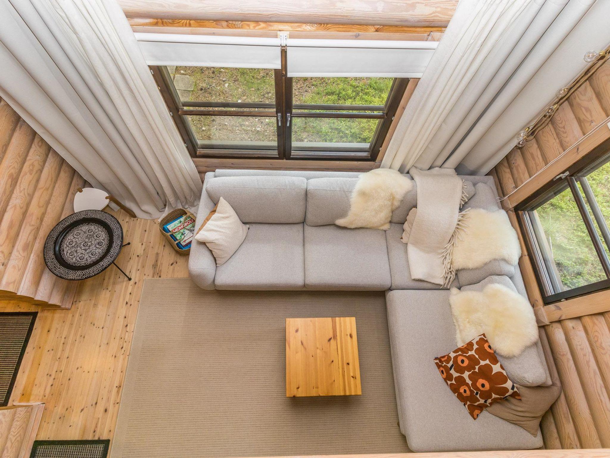 Log built row house apartment 1986, kitchen, living room, upstairs (steep stairs) bedroom with a double bed, sleeping loft extra mattress for one. Washroom and sauna (elec. stove).