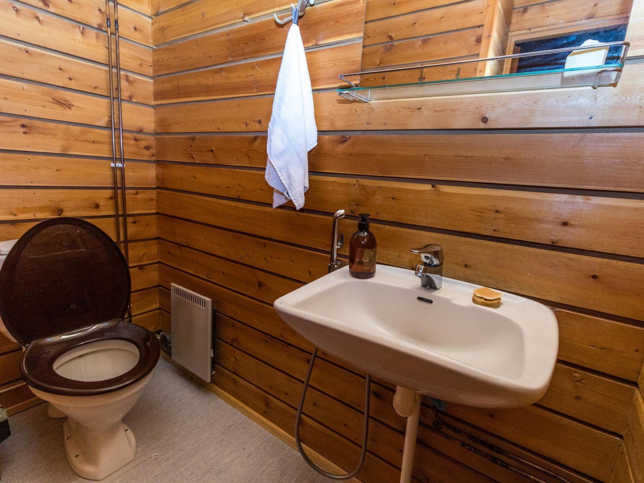 The cabin has a spacious living room and a combined kitchen, with space for spending time together by the atmospheric open fireplace or gathering for a meal. The cabin has a total of six bedrooms, two bathrooms, a drying room for equipment and clothes and a dressing room, a separate toilet, a washroom and a wood sauna in its own peace at one end of the cabin. The cabin has new kitchen appliances and two air-to-air heat pumps, so the cabin offers an excellent level of equipment and the setting for a successful vacation.