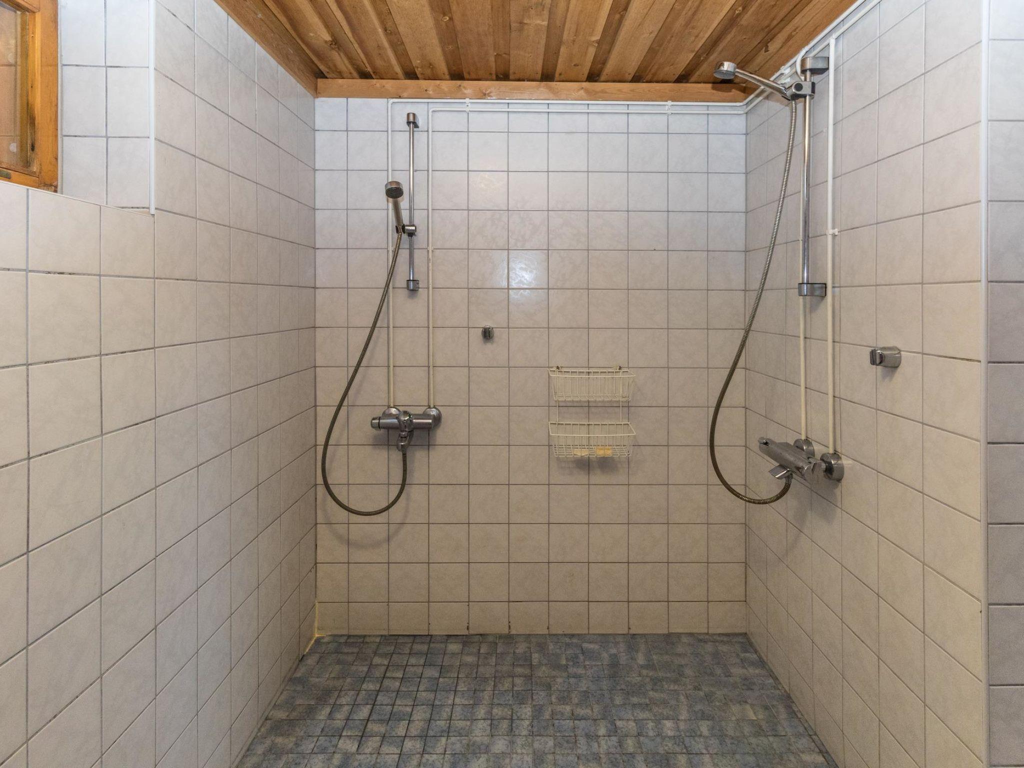 The cottage has two halls. The second hall has two separate toilets, access to the backyard terrace and it separates the living room and bedroom corridor spaces from each other. The second hall serves as an entrance hall between the bedroom corridor and the sauna section. The hall has its own space for storing and maintaining outdoor equipment. Skis can be lubricated on a rack. The cottage has sledges and snowshoes for tenants to use. The cottage has two high chairs.