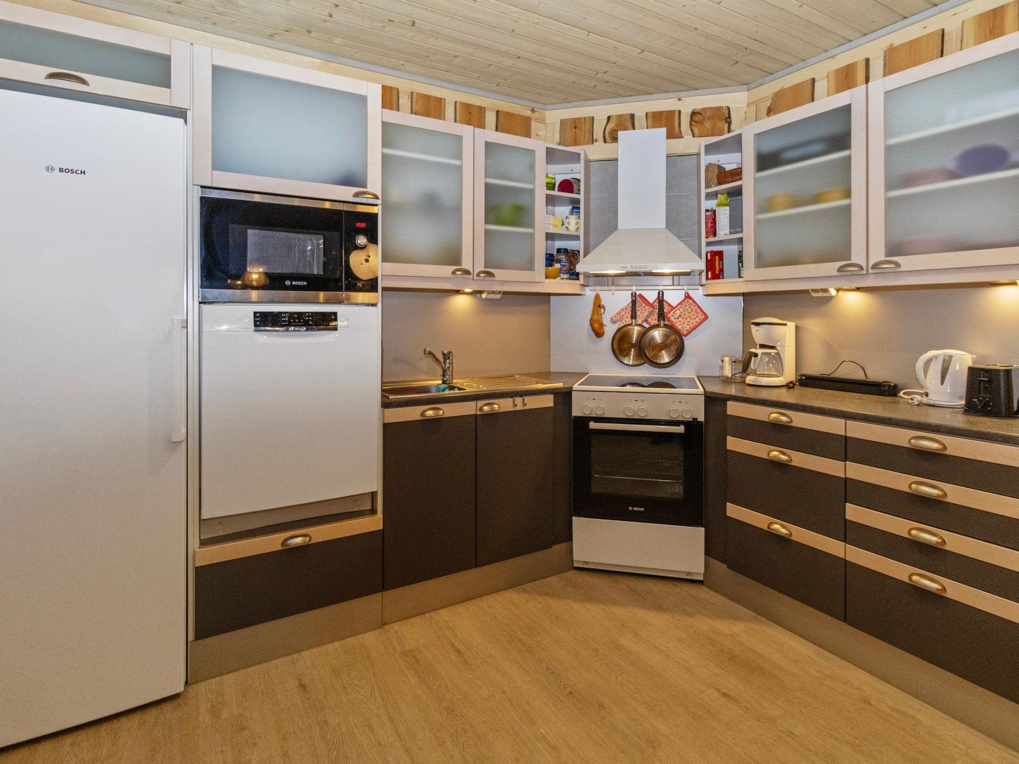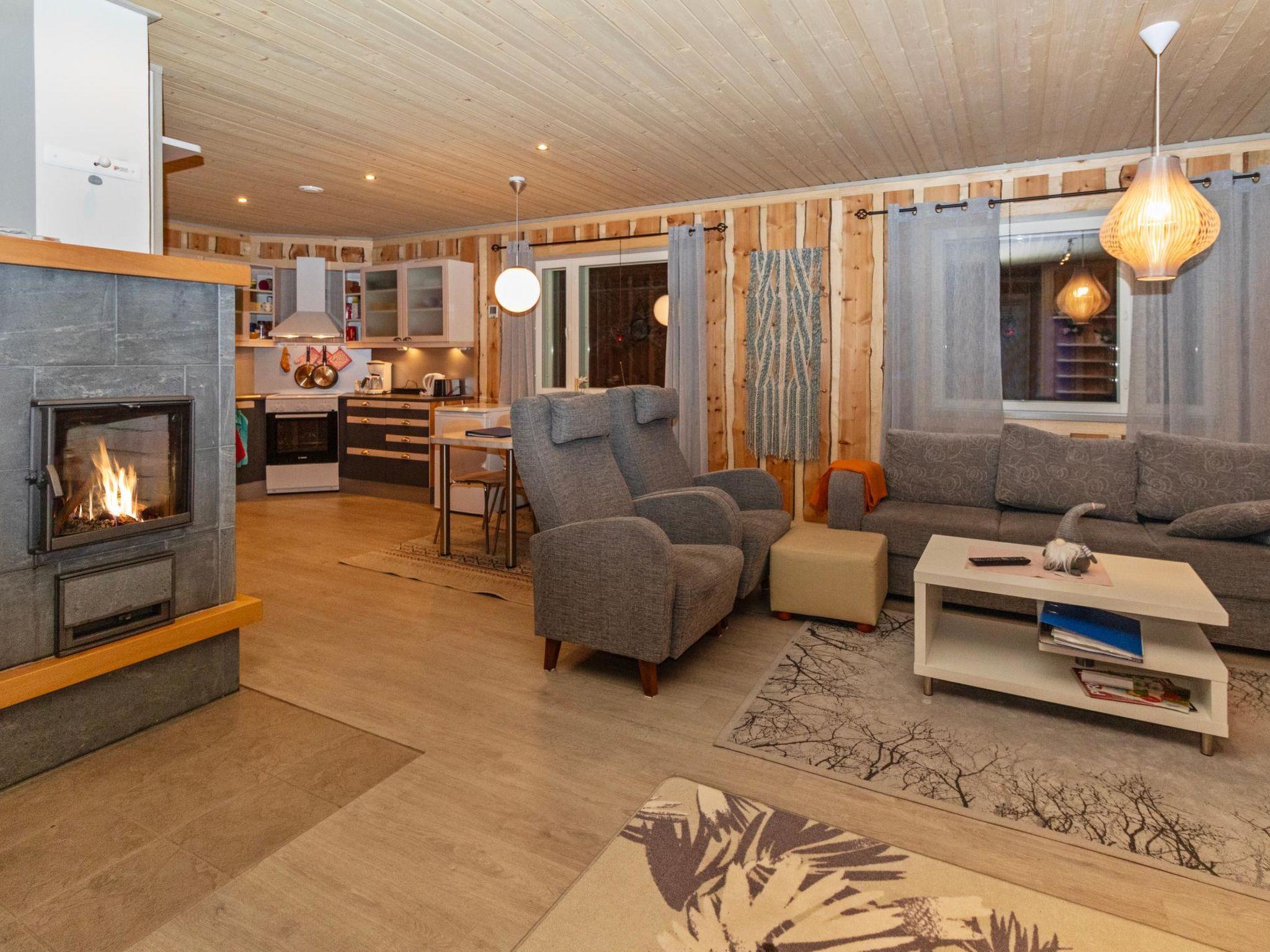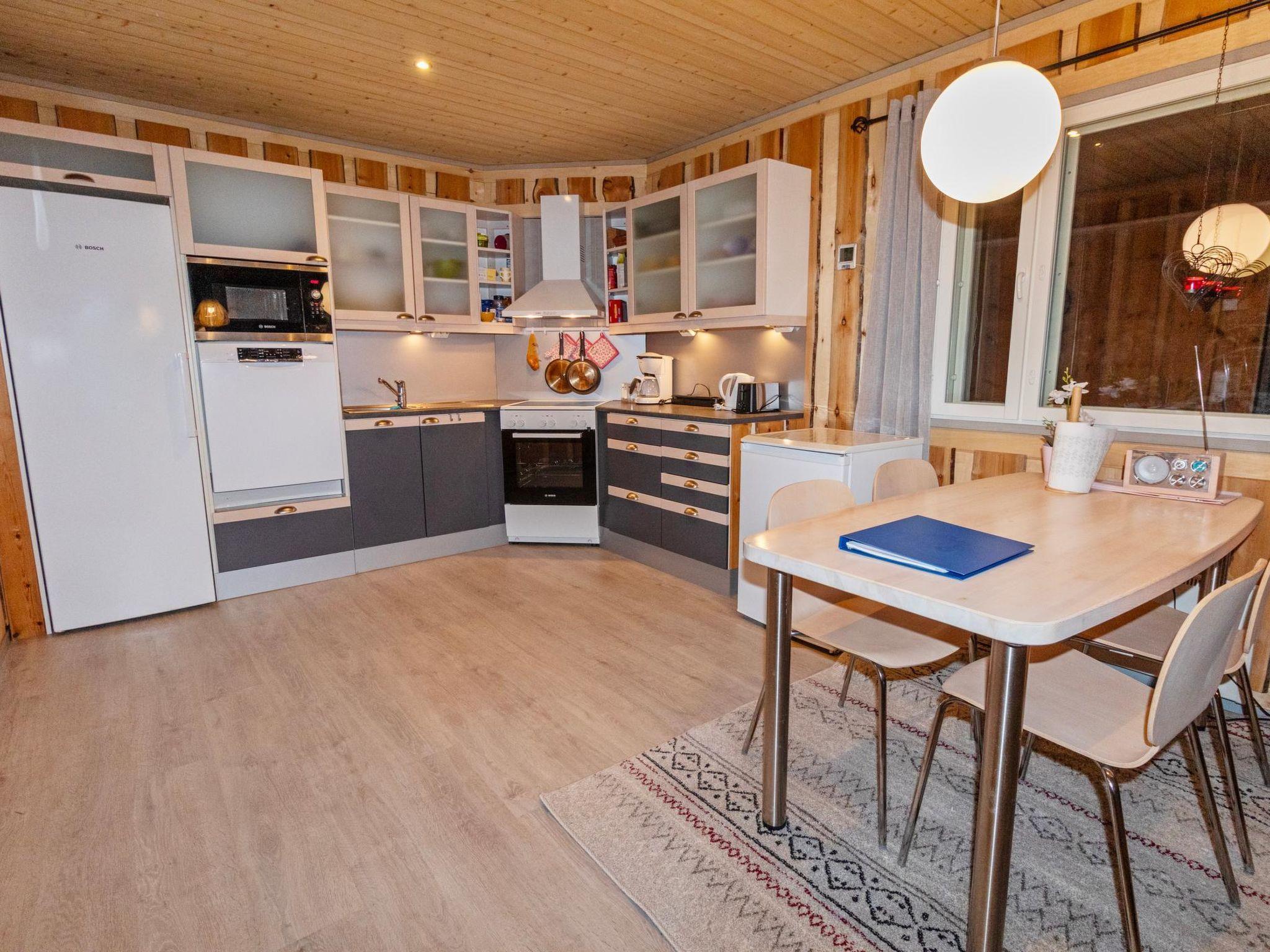 The cabin is situated amidst the traditional scenery of Sevettijärvi village — 419 km north of Kemijärvi and 152 km northeast of Ivalo. With 80 m² of spacious and bright living area, it comfortably accommodates larger groups. The ground floor features a spacious living room/kitchen area, ideal for cooking together and enjoying cozy moments by the fireplace. On the same floor, there are two bedrooms, each with a double bed (160 cm wide). Additionally, there is a sauna, a washroom (with a WC and washing machine), and a separate WC. The stairs lead to an open loft area with sleeping spaces on both sides, each equipped with foldable 80 cm mattresses as extra beds.