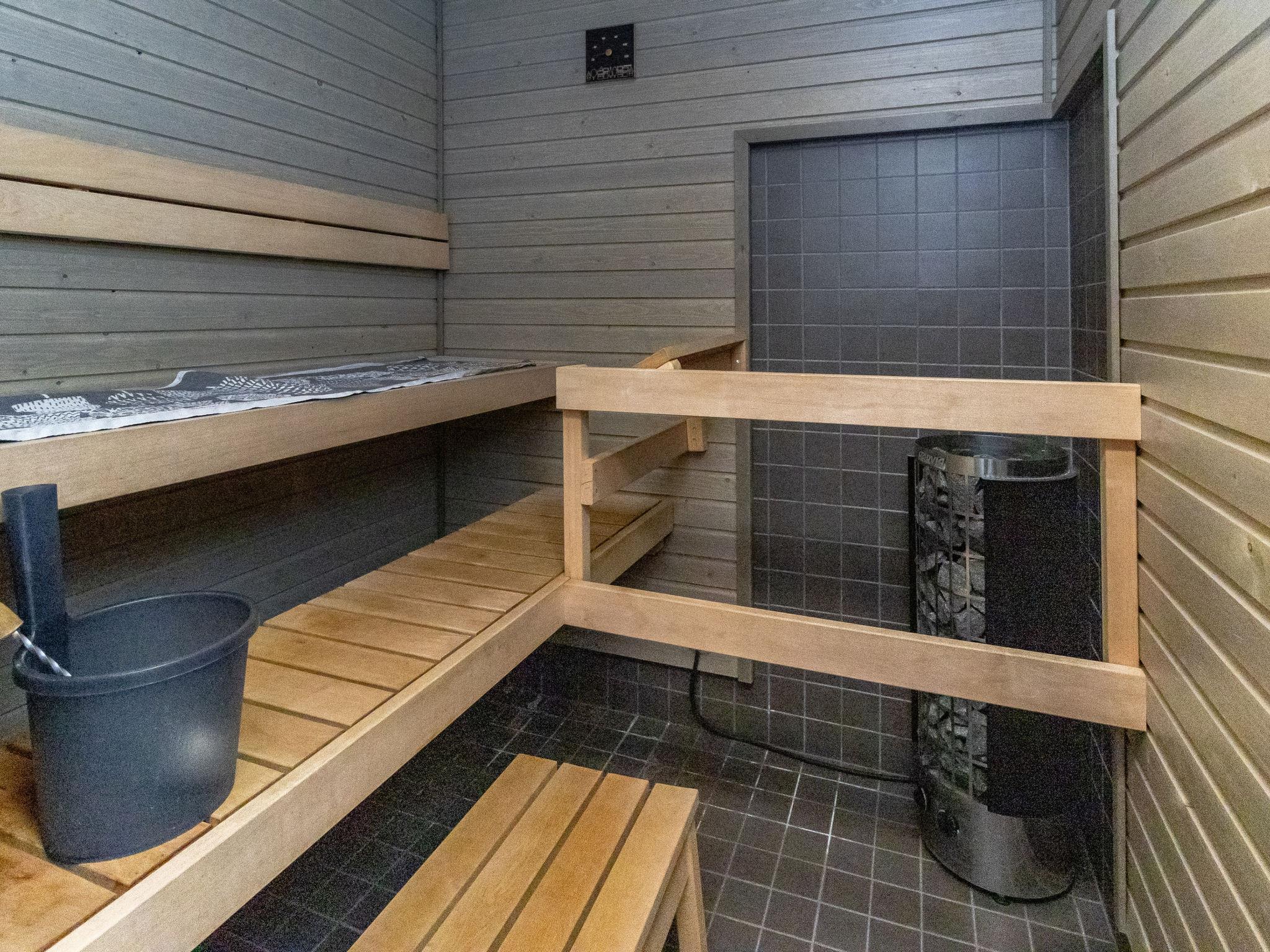 The laundry facilities have all the amenities - a separate toilet, a washroom with a second toilet, and a washing machine and dryer to make everyday life easier. An electric sauna crowns the day's outdoor activities, and a large balcony invites you to breathe in the fresh Lapland air.