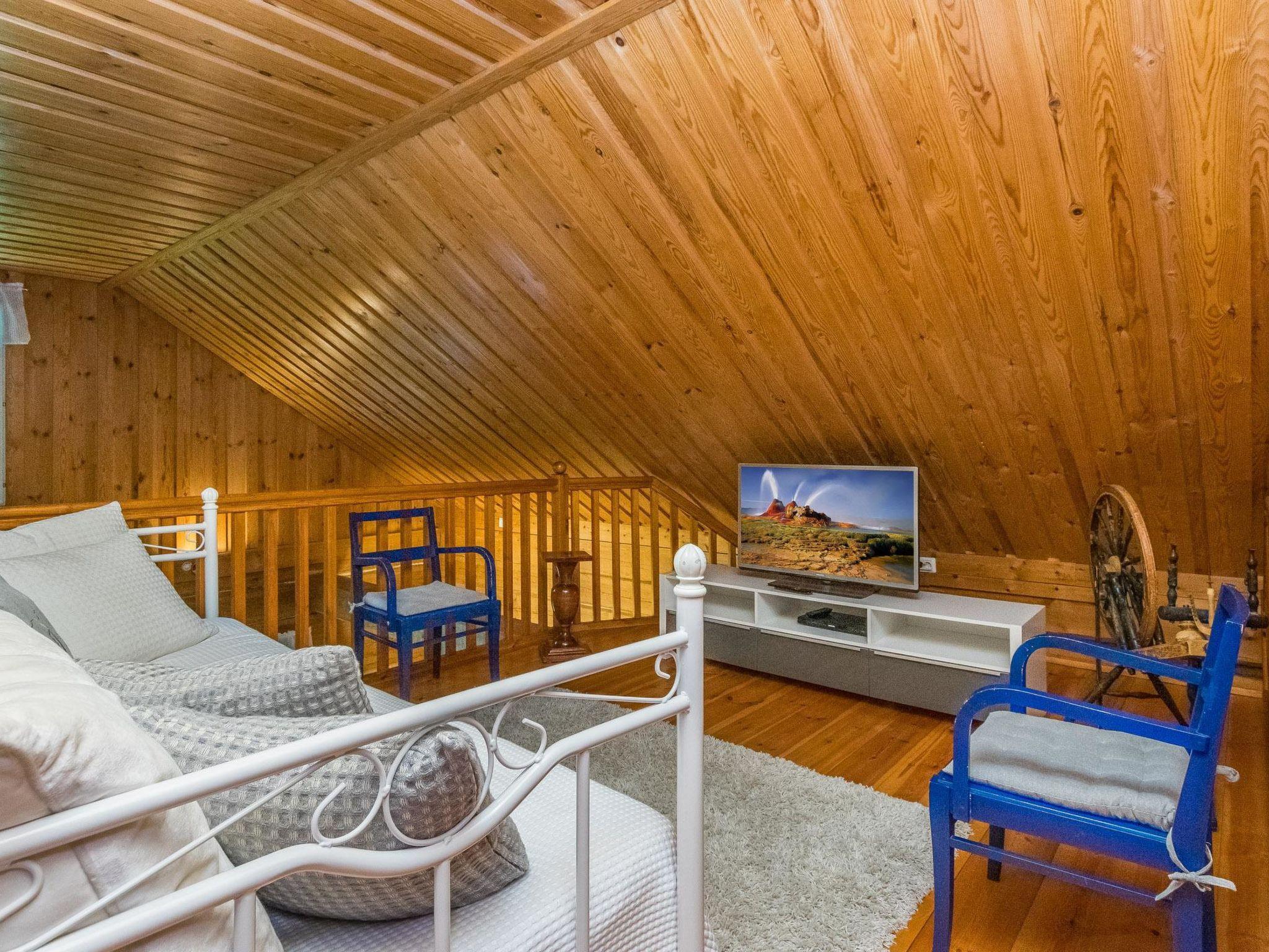 Wooden cottage 1996, with large living room/kitchen, two beds in the bedroom that can be put together or separately, sauna (electric heater), washing facilities and separate toilet renovated 2025, porch. Upstairs two bedrooms, two beds in each, sofa bed in the hall for two people.