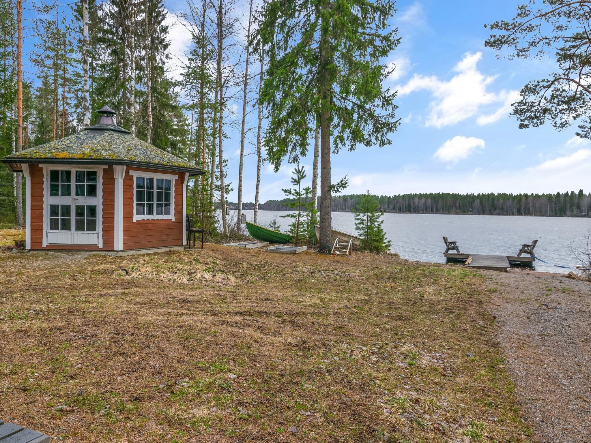 94 km northwest of Jyväskylä, Lake Pääjärvi 40 m, a gently sloping sandy beach that quickly deepens. The cabin has a private pier and two rowing boats. The water depth at the end of the pier is approx. 120 cm.