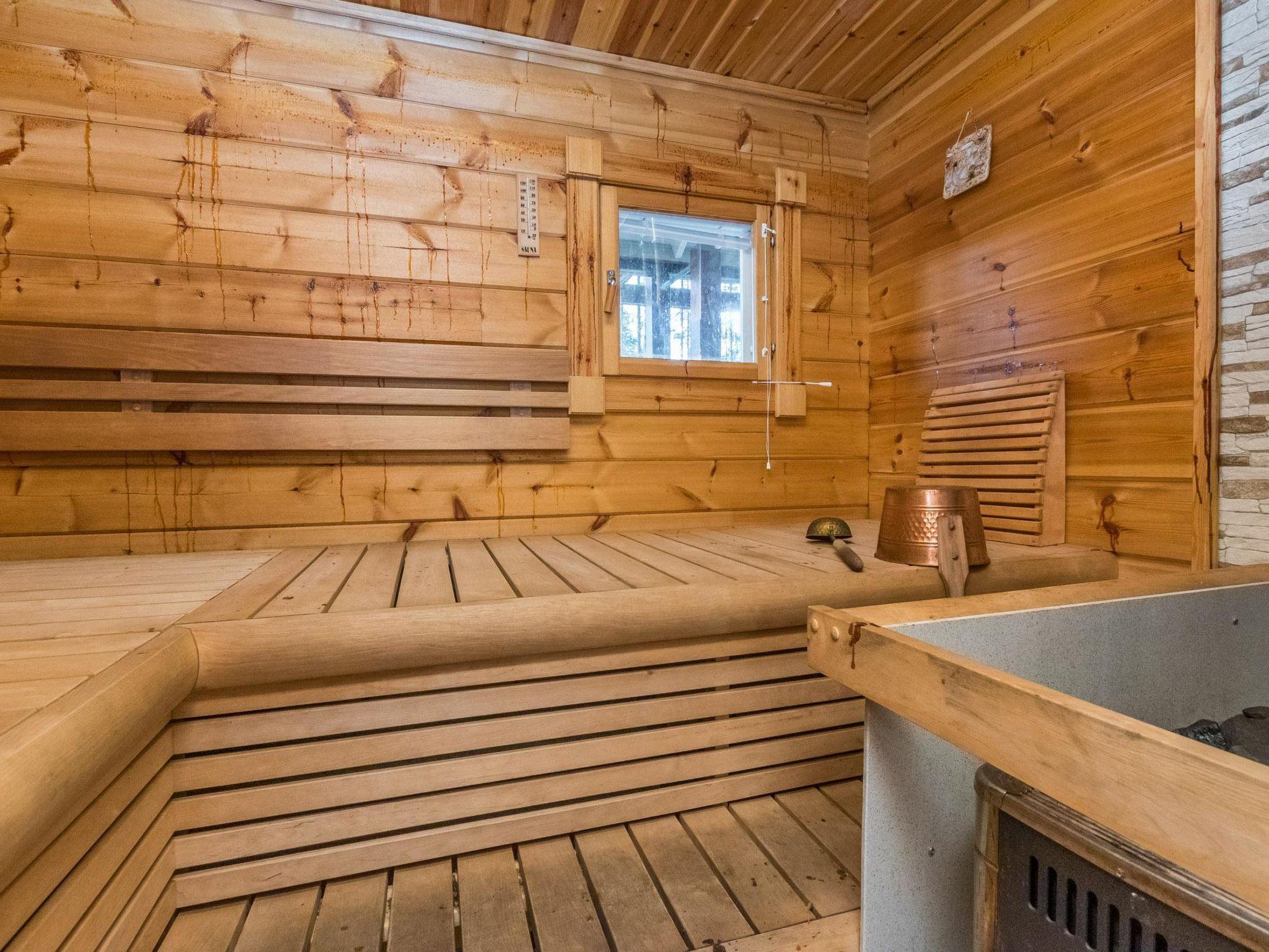 A separate sauna building with a wood stove, a toilet, shower and washing machine in the washroom, a room with a fireplace, a double bed in the loft. Open swimming in winter.