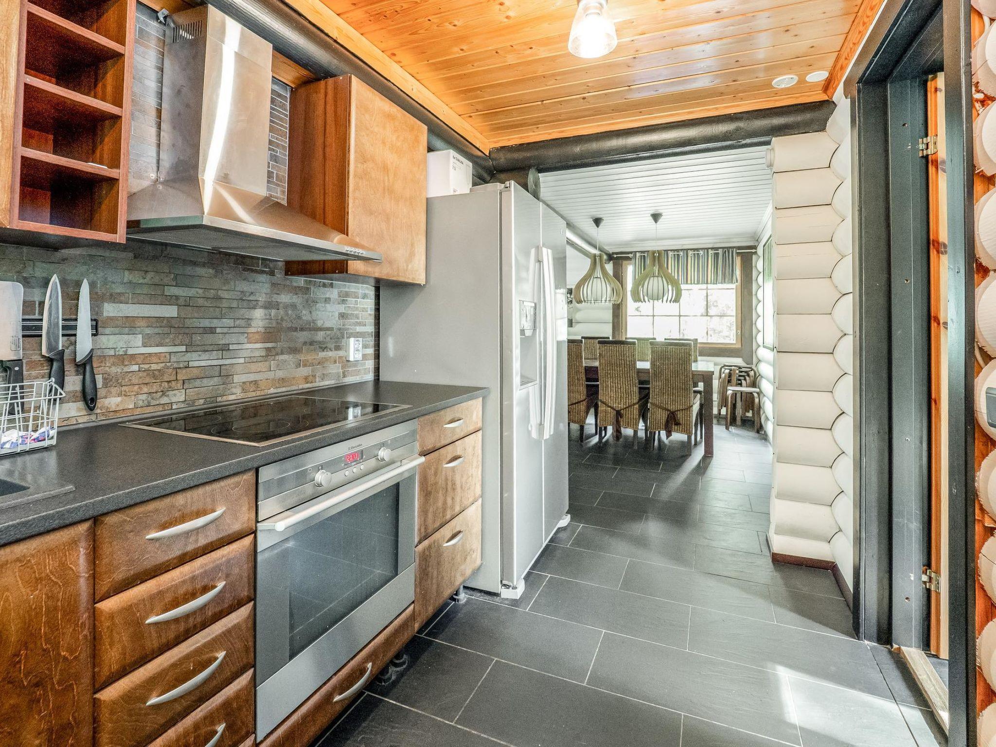 85 km to the west of Jyväskylä, Lake Alasenjärvi 25 m (length 1.6 km, width 350 m), shallow, hard, sandy beach and private boat. Log villa, built in 2008, features a living room with a large corner sofa set, flat-screen TV, and dining area with dining group for ten people. The kitchen is equipped with amenities such as an ice maker and a ceramic stove with an oven. On the ground floor, there are two bedrooms, each with 2 beds. Separate WC, washroom with 2 showers, sauna (electric sauna stove), and 32 m² wide terrace. Stone-built floors with underfloor heating and an air source heat pump for cooling/heating.