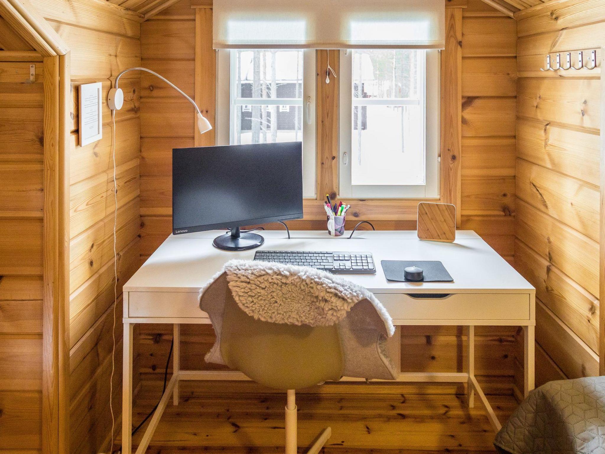 Maximal 1 Haustier/Hund erlaubt. Gemütliche Terrassen-Ferienwohnung in Väliraka, in der Nähe der Dienstleistungen von Levikeskus! Diese Wohnung bietet bequem Platz für die ganze Familie, da es im Erdgeschoss-Schlafzimmer 1 Doppelbett und auf dem Dachboden 3 weitere Einzelbetten gibt. Die geräumige Küche ist ideal, um Essen für die ganze Gruppe zuzubereiten. Neben den Betten befindet sich auf dem hohen Dachboden auch Fernarbeitsplatz, sodass die kombinierte Arbeits- und Urlaubsreise direkt hinter der Tür liegt. Die Lage der Wohnung ist sowohl im Winter als auch in der schneefreien Jahreszeit optimal für Levi-Urlauber. Der Skibus fährt auf Rakkavaarantie und bringt Sie schnell zu den Dienstleistungen des Zentrums von Levi und z.B. Skipisten. Levis beleuchtete Wanderwege verlaufen ein paar hundert Meter von der Wohnung entfernt. Levi Golf ist nur wenige Kilometer entfernt und Levis umfangreiches Netz an Outdoor-Wegen ist nur einen kurzen Spaziergang entfernt. Die Wohnung bietet guten Rahmen für einen abwechslungsreichen Urlaub in Levi! Im Erdgeschoss befindet sich 1 Schlafzimmer für zwei Personen, geräumige Küche mit Esstischen und Wohnzimmer. Im Erdgeschoss befindet sich auch separate Toilette, sowie Waschraum und Sauna. Der Dachboden verfügt über Betten für drei Personen und einen Arbeitsplatz. Die Wohnung verfügt außerdem über einen Außenabstellraum z.B. für Skiausrüstung während Ihres Aufenthaltes.