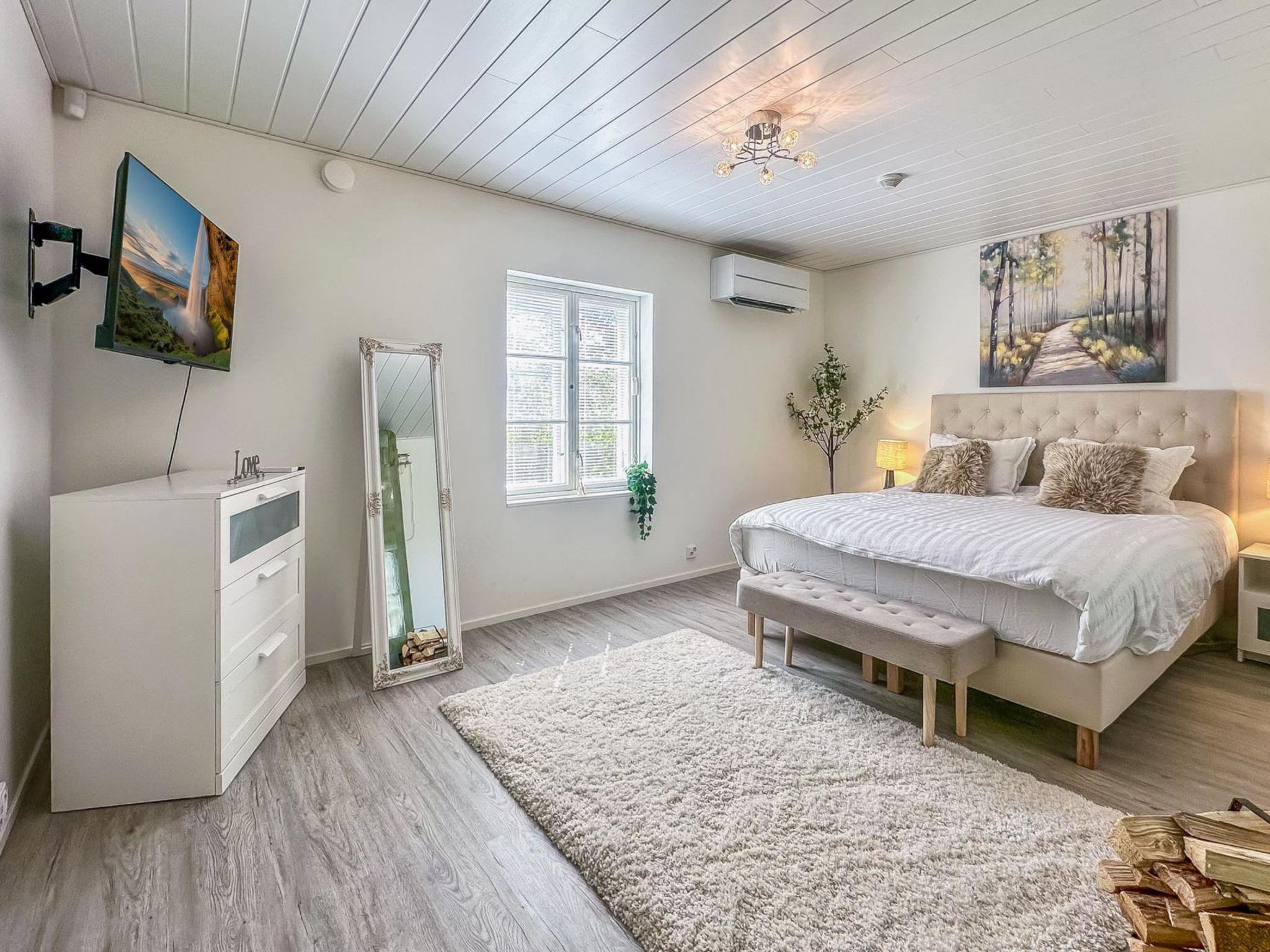 Archipelago Sea 200 m, no private beach, spacious mansion with a well-equipped stylish kitchen, hall with plenty of room for the whole party, downstairs three bedrooms with two beds, a double bed in the second bedroom and a sofa bed for one in the third bedroom. Upstairs, a 120 cm wide bed and a sofa bed, including a 160 cm wide bed for two. A total of eight beds. Wc with shower cubicle, washing machine and tumble dryer.