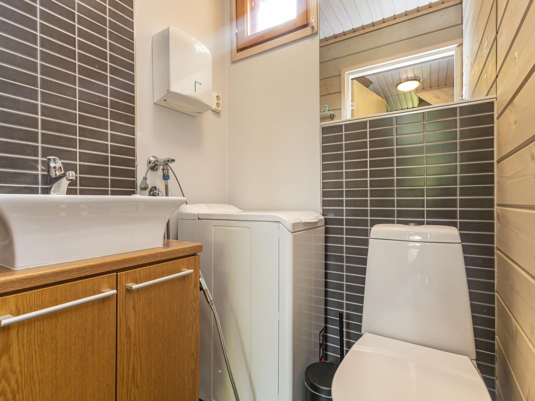 On the ground floor, there are two bedrooms: one with a 160 cm double bed and the other with two 80 cm wide single beds. The ground floor also includes a well-equipped kitchen, a living area, a washroom, a sauna, and a separate WC. The loft provides sleeping places for four, all in 80 cm wide single beds.