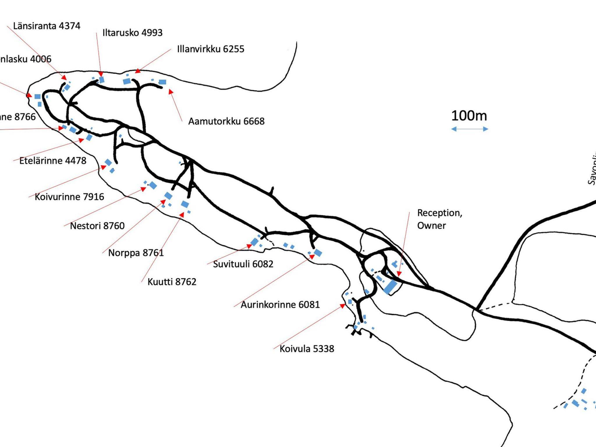 56 km südlich von Savonlinna. See Saimaa/Pihlajavesi 25 m, flaches Wasser, fester Sandboden. Eigenes Boot. Blockhaus, Baujahr 1995, Wohnküche mit Schlafsofa, 2 Schlafzimmer mit je 2 Betten, Waschraum, Ankleideraum, Sauna (Elektroherd), offene Veranda. Seesauna 10 m2 (mit Holz beheizt). Aussenbordmotor und Fahrräder zu mieten.